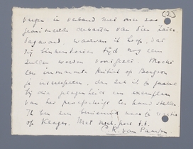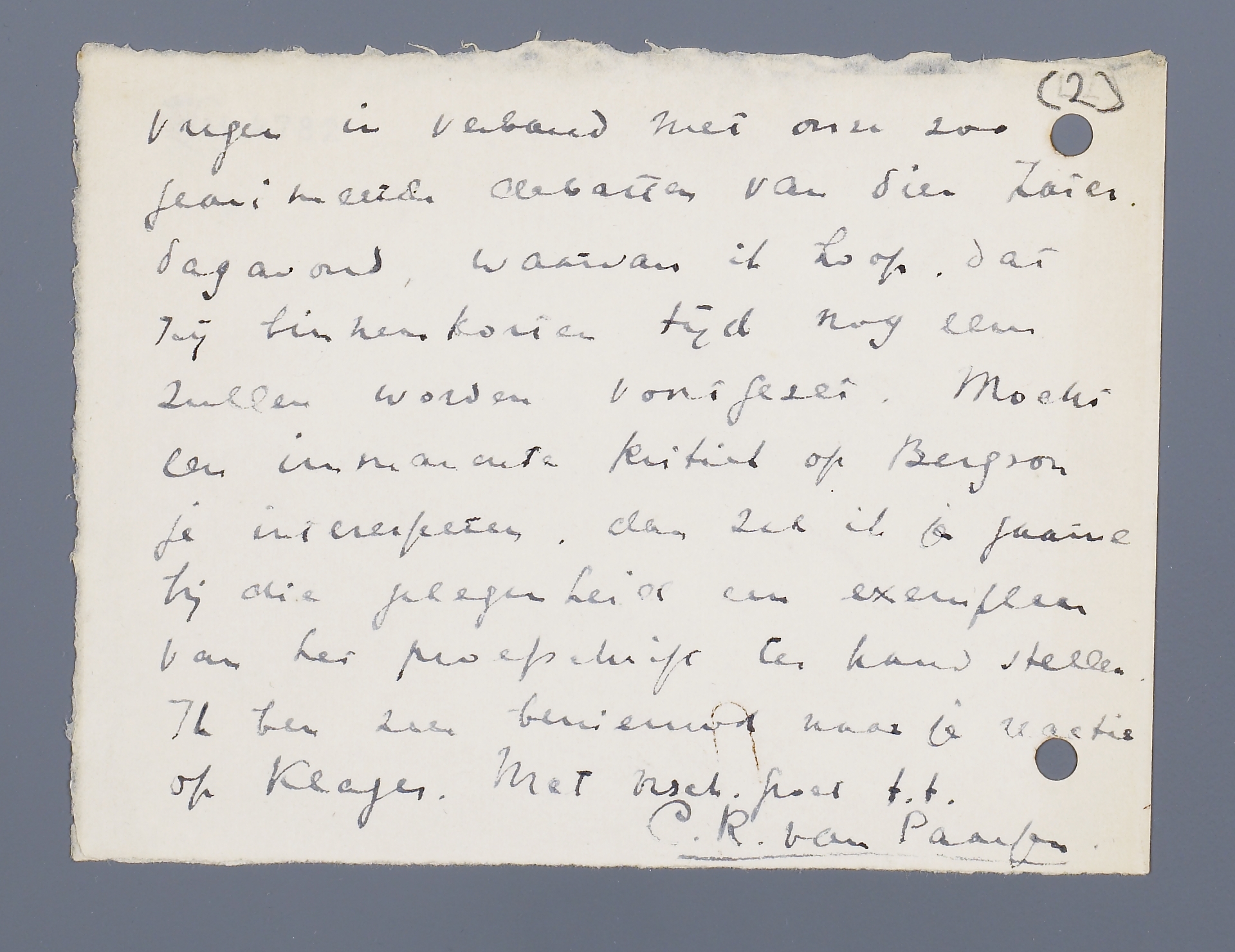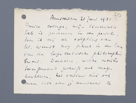 Derhalve, welke merites bovengenoemd geschrift ook mogen aankleeven, het verdient niet ook maar iets van je aandacht te vragen in verband met onze zoo geanimeerde debatten van dien Zaterdagavond, waarvan ik hoop dat zij binnen korten tijd nog eens zullen worden voortgezet. Mocht een immanente kritiek op Bergson je interesseeren, dan zal ik je gaarne bij die gelegenheid een exemplaar van het proefschrift ter hand stellen. Ik ben zeer benieuwd naar je reactie op Klages.