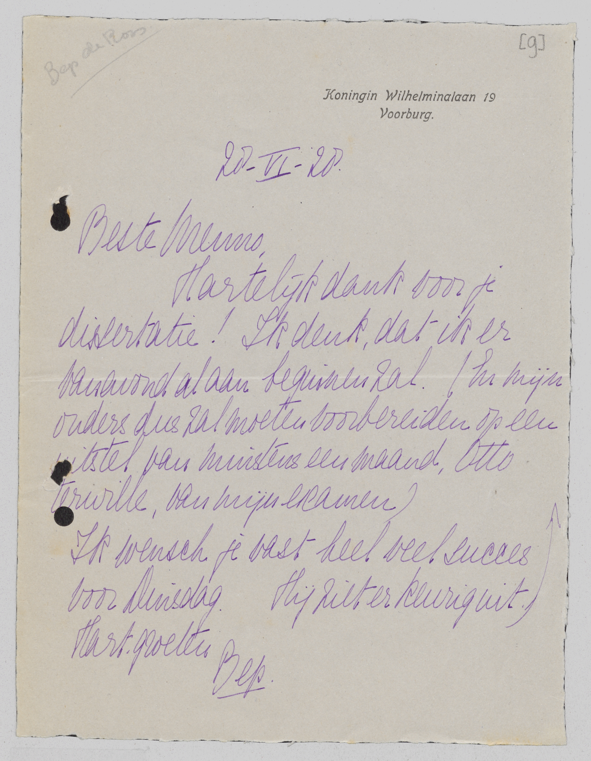 Hartelijk dank voor je dissertatie! Ik denk, dat ik er vanavond al aan beginnen zal. (En mijn ouders dus zal moeten voorbereiden op een uitstel van minstens een maand, Otto terwille, van mijn examen.)