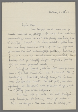 Schrijf me vooral, als ik iets voor je kan doen. Ik heb vacantie, ben heelemaal tot je beschikking. Doe het, schrijf even, als je me voor iets gebruiken kunt. Ik zit zelf, na dat afscheid, zoo boordevol met ellendige dingen, dat ik je extra graag zou willen helpen.
