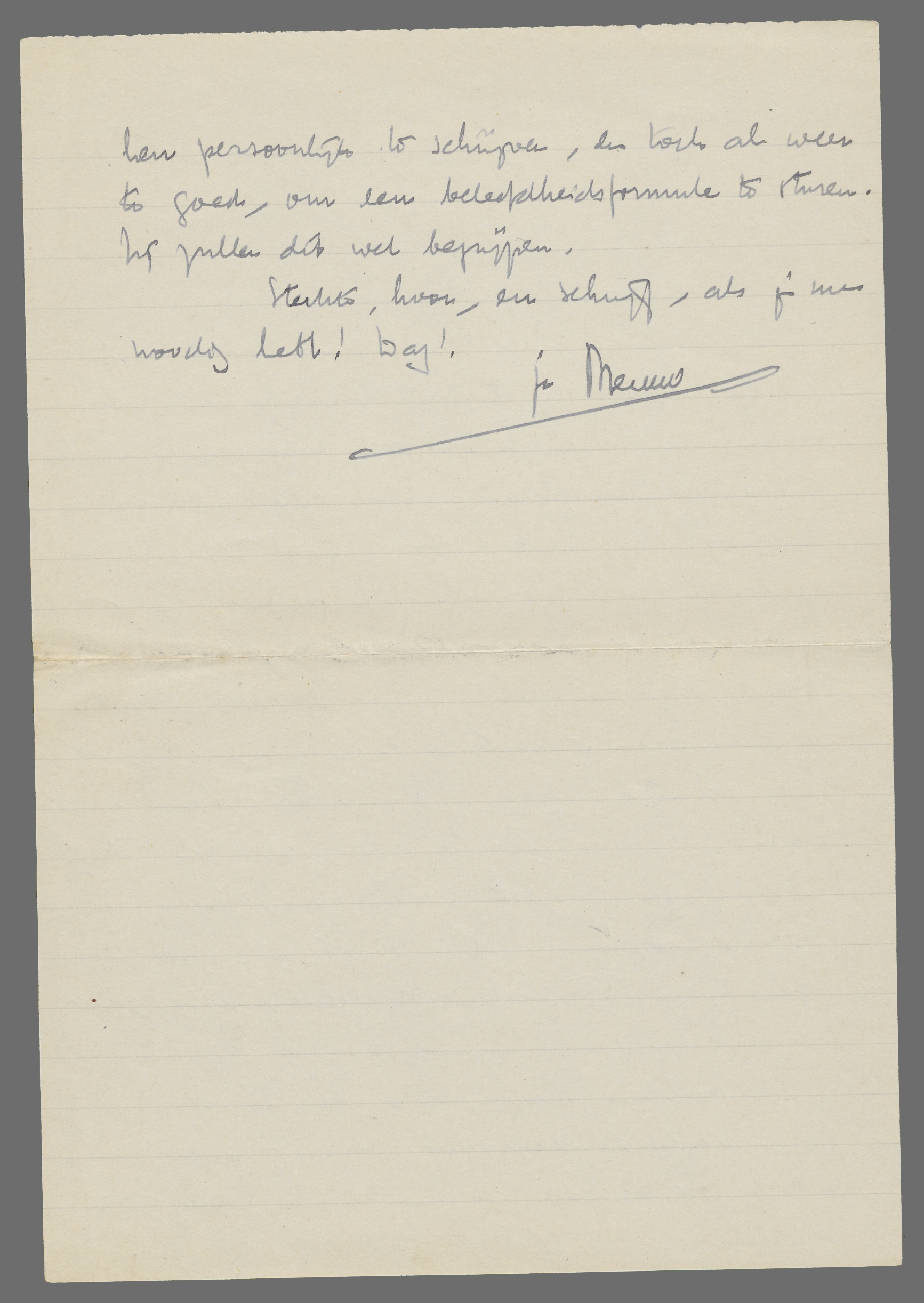 Misschien wil je ook via dit briefje mijn hartelijke deelneming aan je vader en Bob overbrengen. Ik ken hen te weinig, om hen persoonlijk te schrijven, en toch al weer te goed, om een beleefdheidsformule te sturen. Zij zullen dit wel begrijpen.