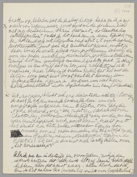Ik vind erg goed Dumay aan het ontbijt bij Max, de revolver in het begin bij Karin ‘die hem iets te zeggen heeft’, oom Jacobus en de liefdesbrieven, kortom alle meditatiestukken. Ik heb nog altijd het gevoel dat jij-op-je-best bent (een cerebraal man die toch sensitief is, en deze twee dingen in volkomen harmonie; cerebraal is van mij natuurlijk geen scheldwoord), veel meer dan, in de eerste hoofdstukken, dat wat Eddy noemt ‘als Menno zoo populair is’ (maar E. leest je wel erg graag over iets dat je zoo door en door kent als het gymnasium), en ik ‘Menno's gewone-woorden-theorie’ die een fetichisme geworden is en je eigenlijk toch niet ligt. Bijvoorbeeld: de begrafenisscène, - die toch heelemaal door Dumay's oogen en niet door die van de auteur gezien moet worden, meen ik - lijkt me drie bladzijden lang gemakkelijk van realisme en daardoor ruw, tot er ineens volkomen onvoorbereid staat dat ook Dumay vocht met zijn ontroering. Wanneer je een beschrijving geëmotioneerd of dramatisch wilt maken, is het altijd geloofwaardig bij je, maar wanneer je expres geen emotie of dramatiek wilt geven, geef je er een (als genrestukje knappe - daar niet van!) effectvolheid voor in de plaats, terwijl ik het gevoel heb dat het - in een boek van deze standing (excuseer dit woord van Max of wie?) - een voor de auteur karakteristieker effect zou zijn wanneer de stijl toonloos en koel genoeg was om te verraden dat er met opzet iets (de emotie en de dramatiek) in afwezig werd gehouden.