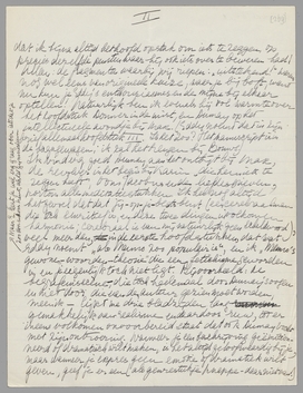 Als ik me nu in details ga vermijden, zul je de indruk krijgen dat Eddy en ik het erg samen bekokstoofd hebben, maar dat is niet waar: alleen bleek dat ik, toen ik het na hem las (en vóór hij er iets over losgelaten had), dat ik bijna altijd het hoofd opstak om iets te zeggen, op precies dezelfde punten waar hij ook iets over te beweren had! Alleen: de fragmenten waarbij wij riepen: ‘uitstekend’! waren nog wel eens een originele keuze, waar je bij boft, want nu kun je Eddy's enthousiasmes en de mijne bij elkaar optellen! Natuurlijk ben ik evenals hij vol warmte over het hoofdstuk Donner in de mist, en Dumay op het intellectueele avondje bij Max. (Eddy noemt dat in zijn brief allemaal hoofdstuk III. Is het zoo? Het manuscript is in de bagagewagen; ik zal het brengen bij Bouws.)