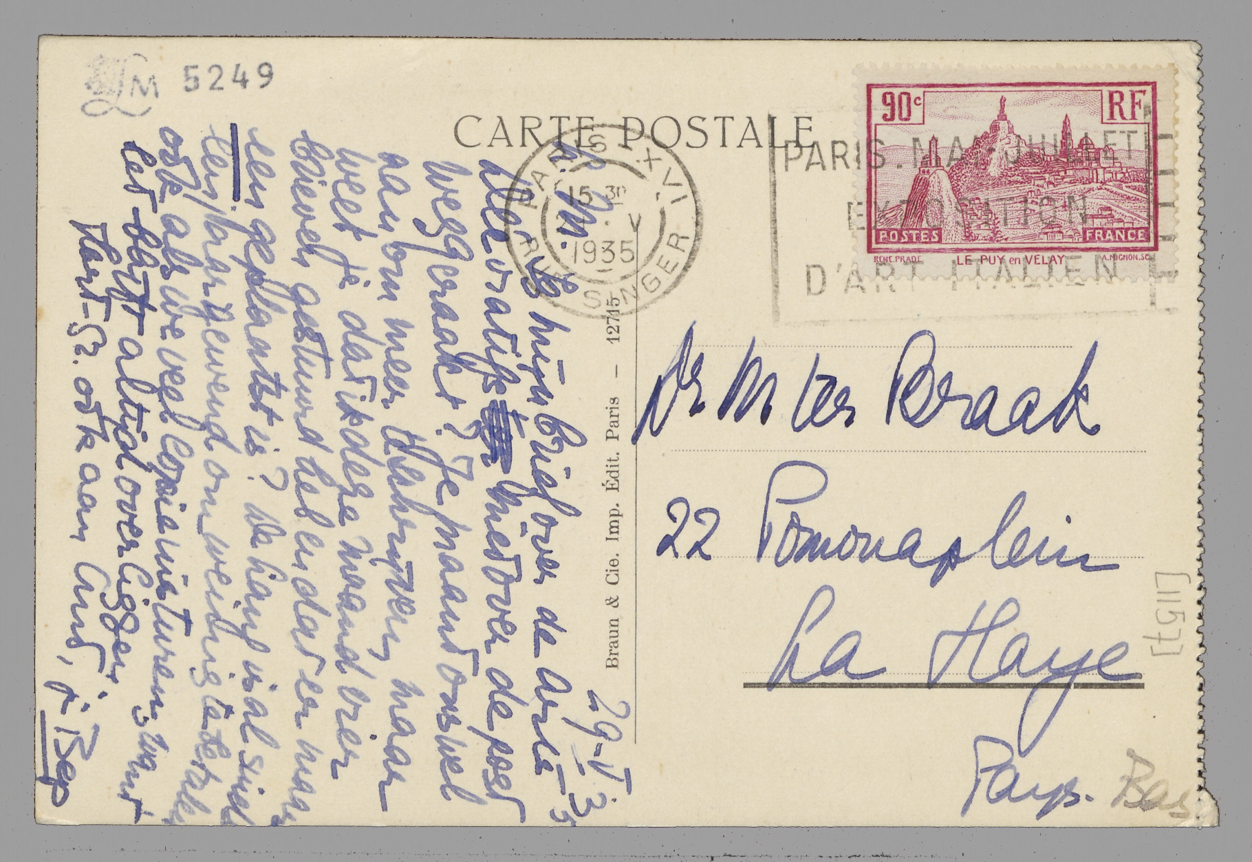 Is mijn brief over de Arts Décoratifs niet over de post weggeraakt? Je maant ons wel aan om meer te schrijven, maar weet je dat ik deze maand vier brieven gestuurd heb en dat er maar een geplaatst is? De Lang is al sinds een jaar gewend om weinig te betalen ook als we veel copie insturen, want het blijft altijd overliggen.