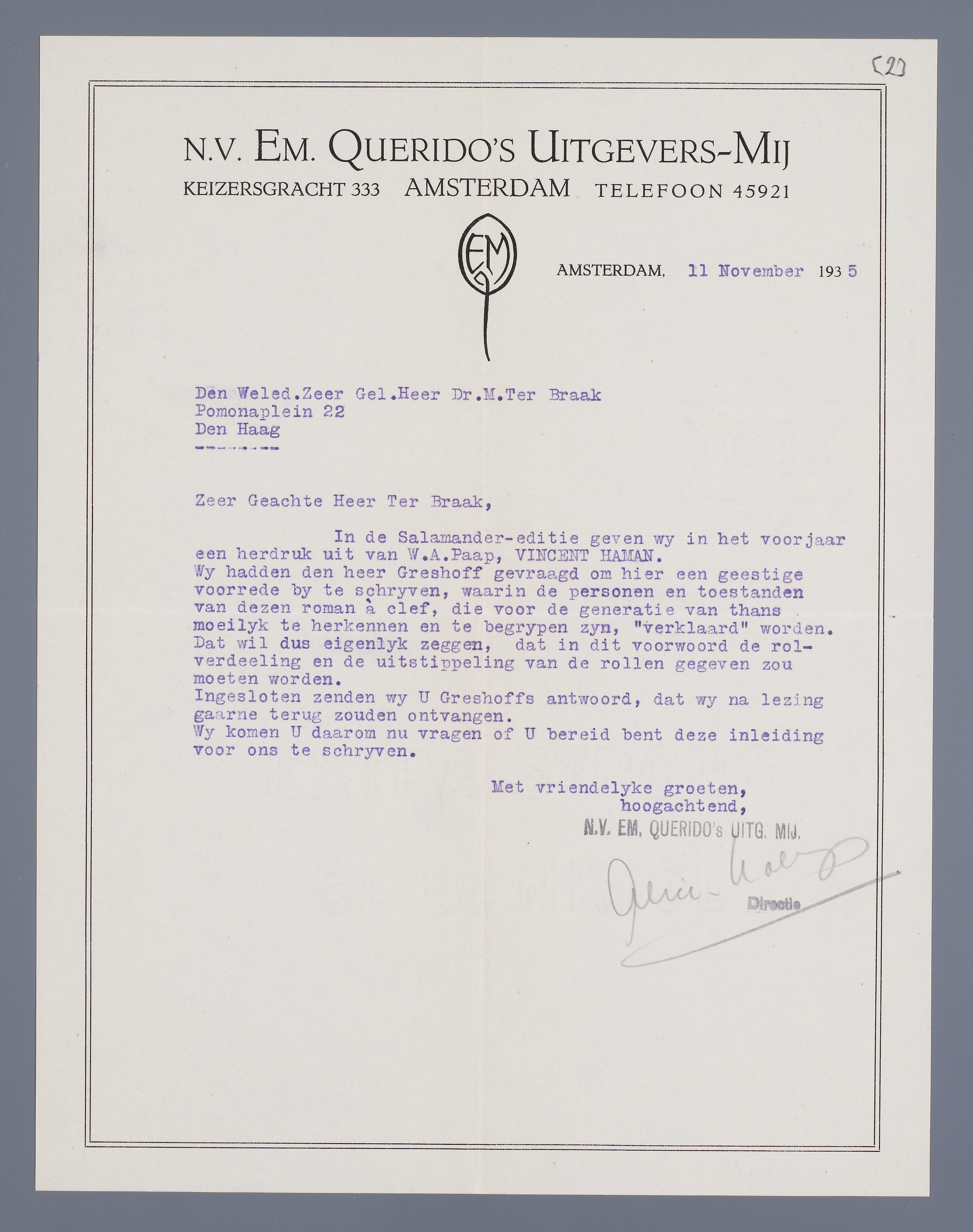 In de Salamander-editie geven wy in het voorjaar een herdruk uit van W.A. Paap, Vincent Haman.
