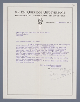 Wy komen U daarom nu vragen of U bereid bent deze inleiding voor ons te schryven.