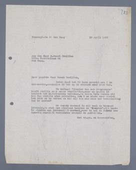 Uw tweede verhaal is mij veel te bewust literair. Ik stel het absoluut beneden de ‘Kroniek’. Dit laatste is slechts een persoonlijk oordeel, want ik zal de schets zoo spoedig mogelijk doorzenden evenals de gedichten.