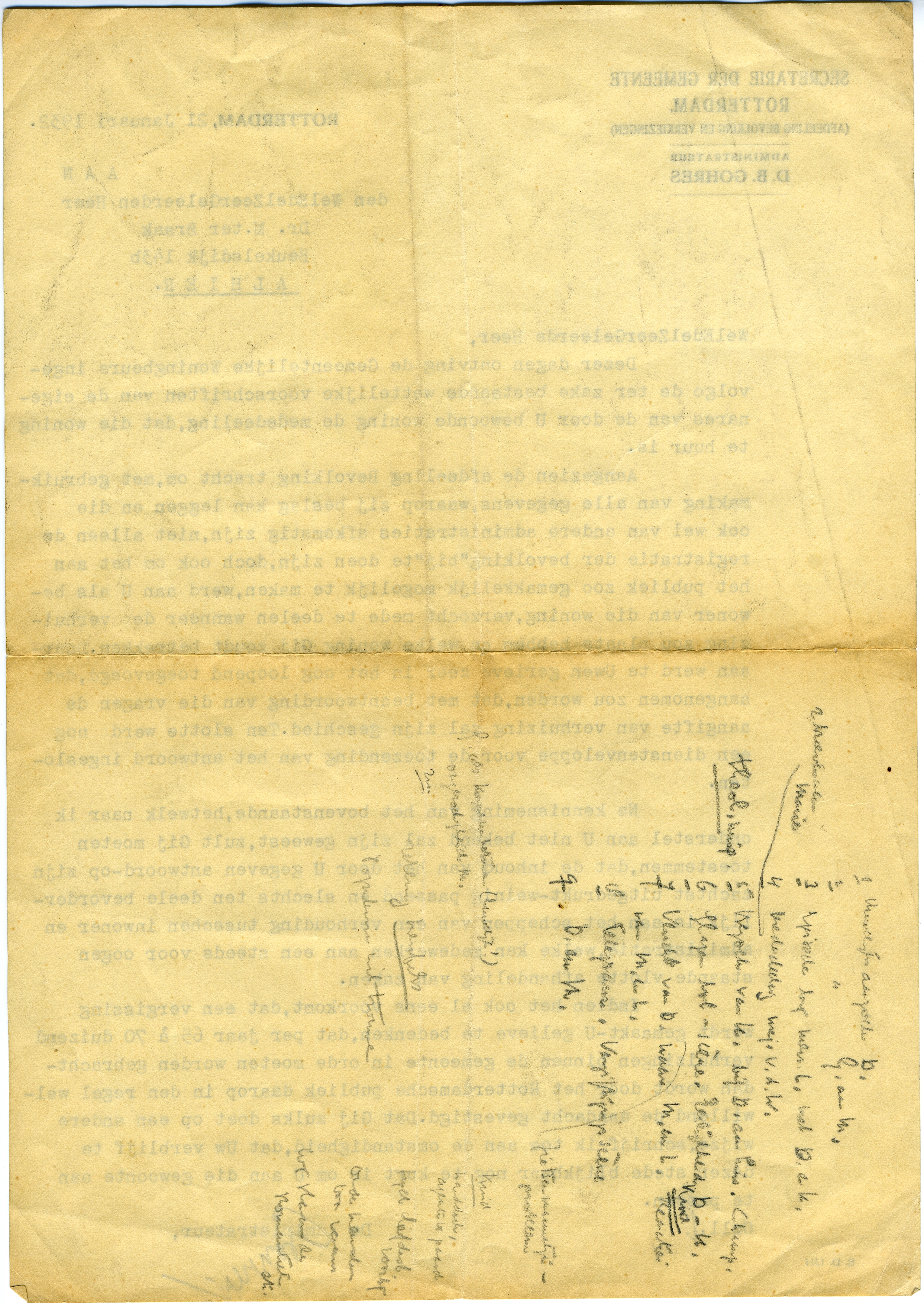 Briefwisseling Menno ter Braak - Gemeente Rotterdam, Secretarie