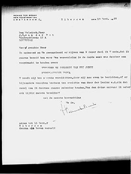 U zoudt mij ten zeerst verplichten, door mij nog even te berichten, of er bijzondere wenschen bestaan ten opzichte van duur der lezing e.d.; in dat geval zou ik daarmee gaarne rekening houden. Van den datum ontvang ik zeker ook tijdig bepaling?