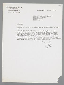 Hiermede erken ik de ontvangst van Uw schrijven van 12 Juni 1937.