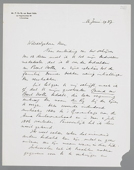 Naar aanleiding van uw schrijven van 12 dezen moet ik U tot mijn leedwezen mededeelen, dat ik U over den bedoelden van Beest Holle en zijne relaties tot de familie Douwes Dekker weinig inlichtingen kan verstrekken.