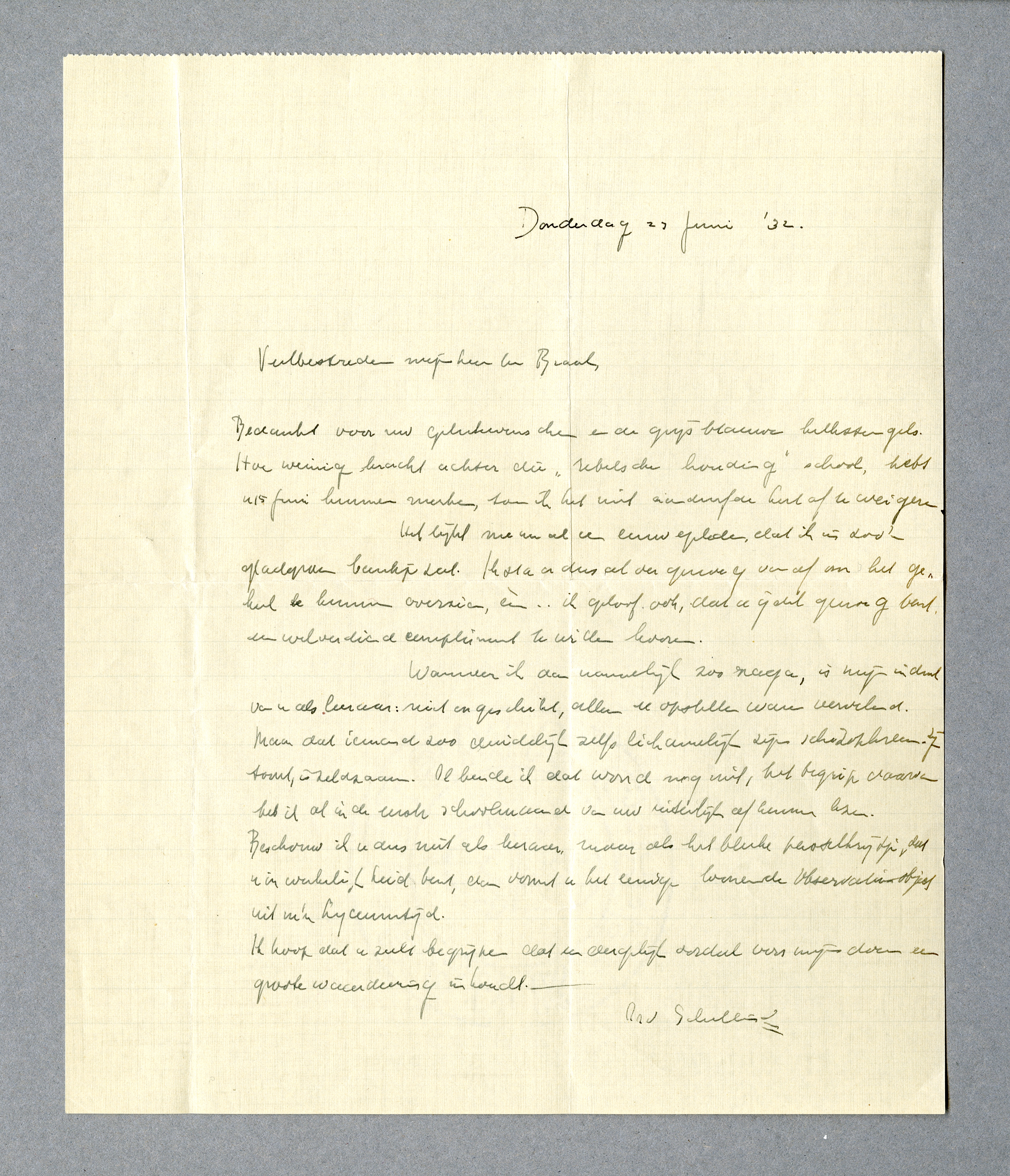 Bedankt voor uw gelukwensen en de grijsblauwe kelkstengels. Hoe weinig kracht achter die ‘rebelsche houding’ school, hebt u 15 Juni kunnen merken, toen ik het niet aandurfde kort af te weigeren.