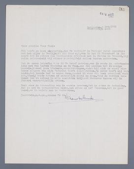 Het treft al heel ongelukkig, dat Uw verblijf in Holland juist samenvalt met het mijne in Berlijn; ik zit daar n.l. van 20 tot en met 29 December! In Januari heb ik echter een voorloopige afspraak met du Perron in Brussel, bij welke gelegenheid wij elkaar ongetwijfeld zullen kunnen ontmoeten.