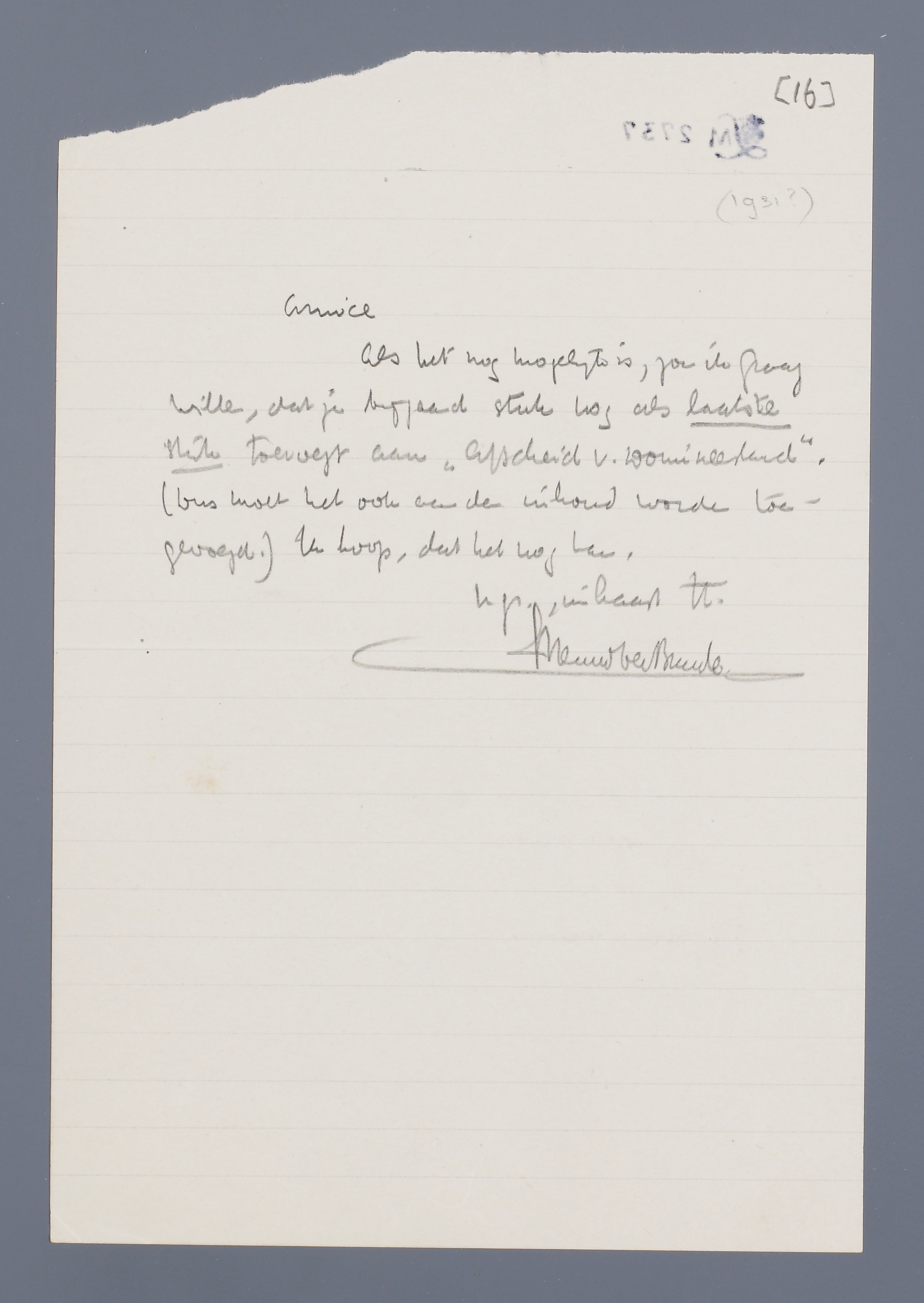 Als het nog mogelijk is, zou ik graag willen dat je bijgaand stuk nog als laatste stuk toevoegt aan ‘Afscheid van Domineesland’. (Dus moet het ook aan de inhoud worden toegevoegd.) Ik hoop dat het nog kan.