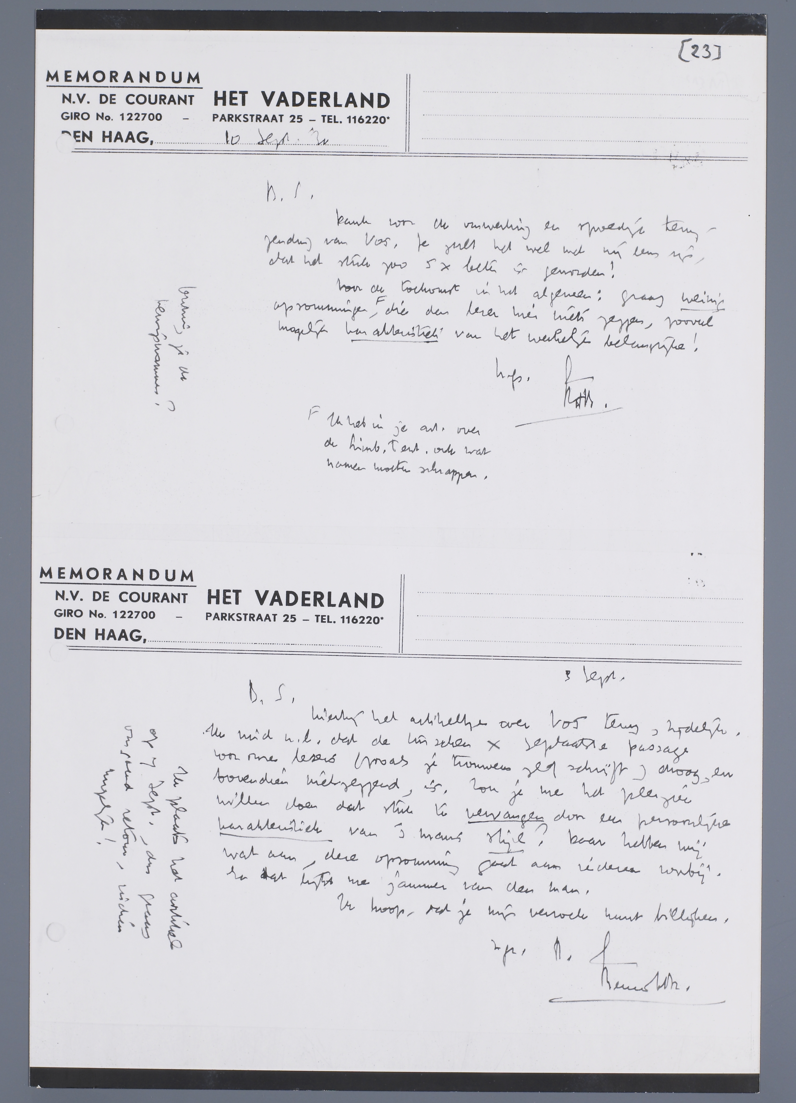 Voor de toekomst in het algemeen: graag weinig opsommingen <Ik heb in je art. over de Limb. tent. ook wat namen moeten schrappen.>, die den lezer niets zeggen, zooveel mogelijk karakteristiek van het werkelijk belangrijke!