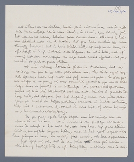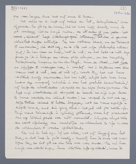 Ik mis H. heel erg. Zij was alles, wat mij teruggaf aan het leven, en dat had ik juist noodig. Vanzelf kom ik daar veel moeilijker toe, en dat zit me dan toch ook weer dwars. Ik mis haar energie voor allerlei dingen, haar intuïtieve kijk op allerlei, waar ik veel te lang over zou denken, kortom, er is niets van haar, wat ik niet mis, maar uiterlijk ben ik weer totaal ‘in vorm’, geen sterveling zal het meer aan me merken, behalve goede vrienden dan. N.B. laat U hiervan absoluut niets aan H. merken, dat zou haar misschien nog maar onnoodig hinderen. Het is haar schuld niet, zij heeft nu de kans, onafhankelijk van mijn invloed verder te gaan, en het is beter, dat zij daarbij niet door overwegingen van deze aard wordt afgeleid. Het zou misschien de zaak onzuiver stellen.