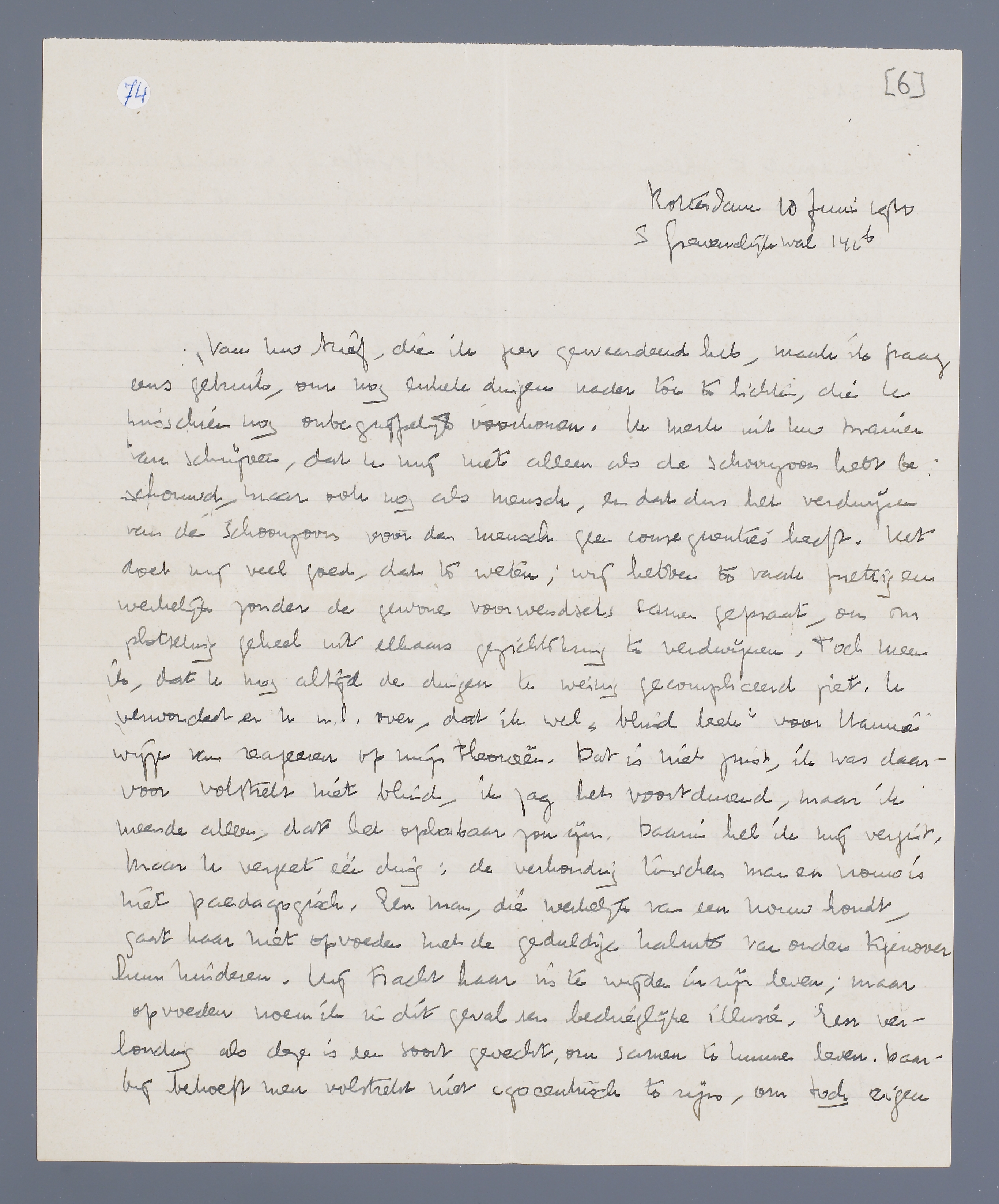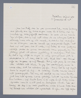 Ik heb vaak bij U aan tafel gegeten, om me heelemaal te vergissen, maar ik vergis me natuurlijk toch op allerlei punten. Ik hoop; dat U den vrijmoedigen toon van deze brief aanvaardt, ik kan trouwens geen andere brieven schrijven. Het geheim van een ander leven, dat zooveel verwante trekken heeft, boeit zoo onweerstaanbaar; en U zult mij een groot genoegen doen, door nog eens te schrijven, wat U van mijn inzichten denkt.