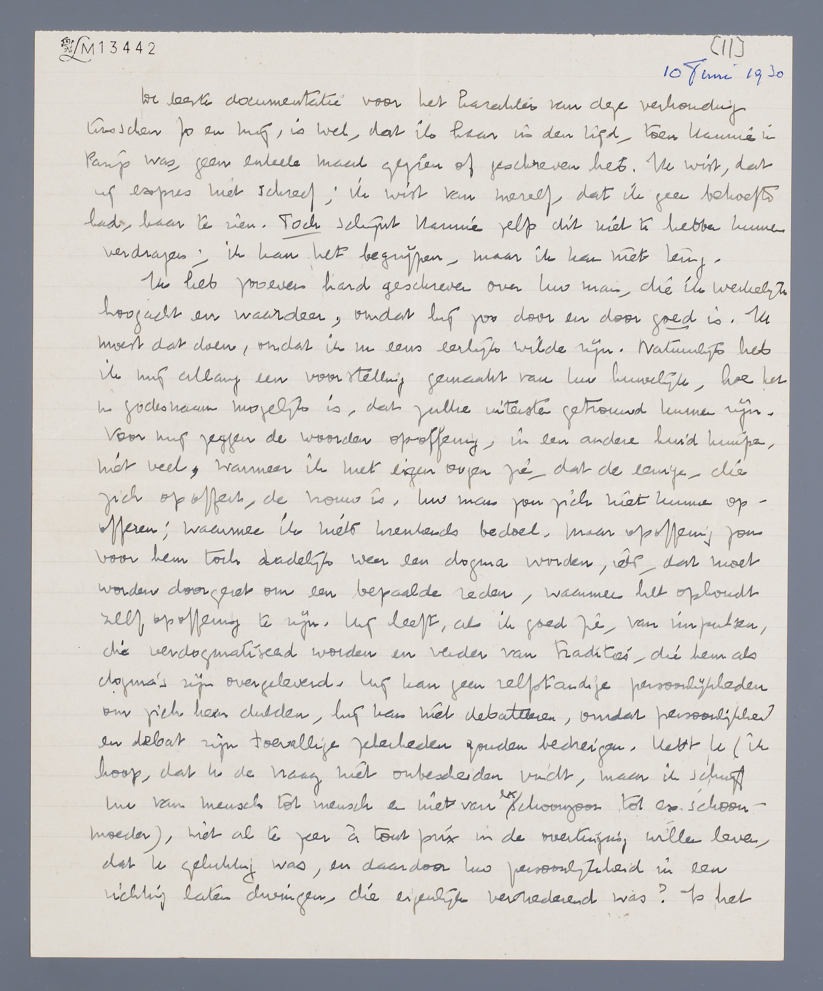 De beste documentatie voor het karakter van deze verhouding tusschen Jo en mij, is wel, dat ik haar in den tijd, toen Hannie in Parijs was, geen enkele maal gezien of geschreven heb. Ik wist, dat zij expres niet schreef; ik wist van mezelf, dat ik geen behoefte had, haar te zien. Toch schijnt Hannie zelfs dit niet te hebben kunnen verdragen, ik kan het begrijpen, maar ik kan niet terug.