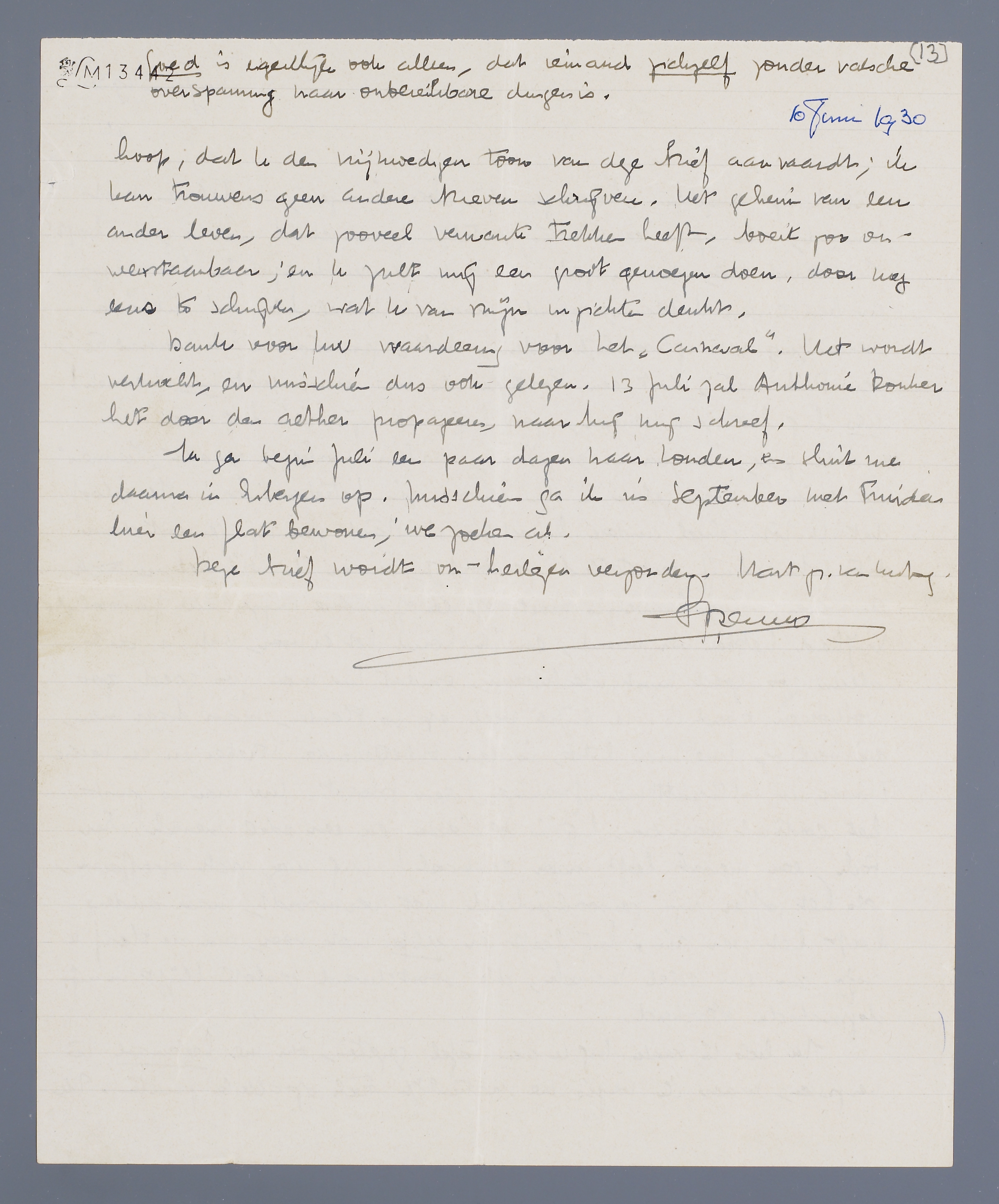 Dank voor Uw waardeering voor het ‘Carnaval’. Het wordt verkocht, en misschien dus ook gelezen. 13 Juli zal Anthonie Donker het door den aether propageeren, naar hij mij schreef.
