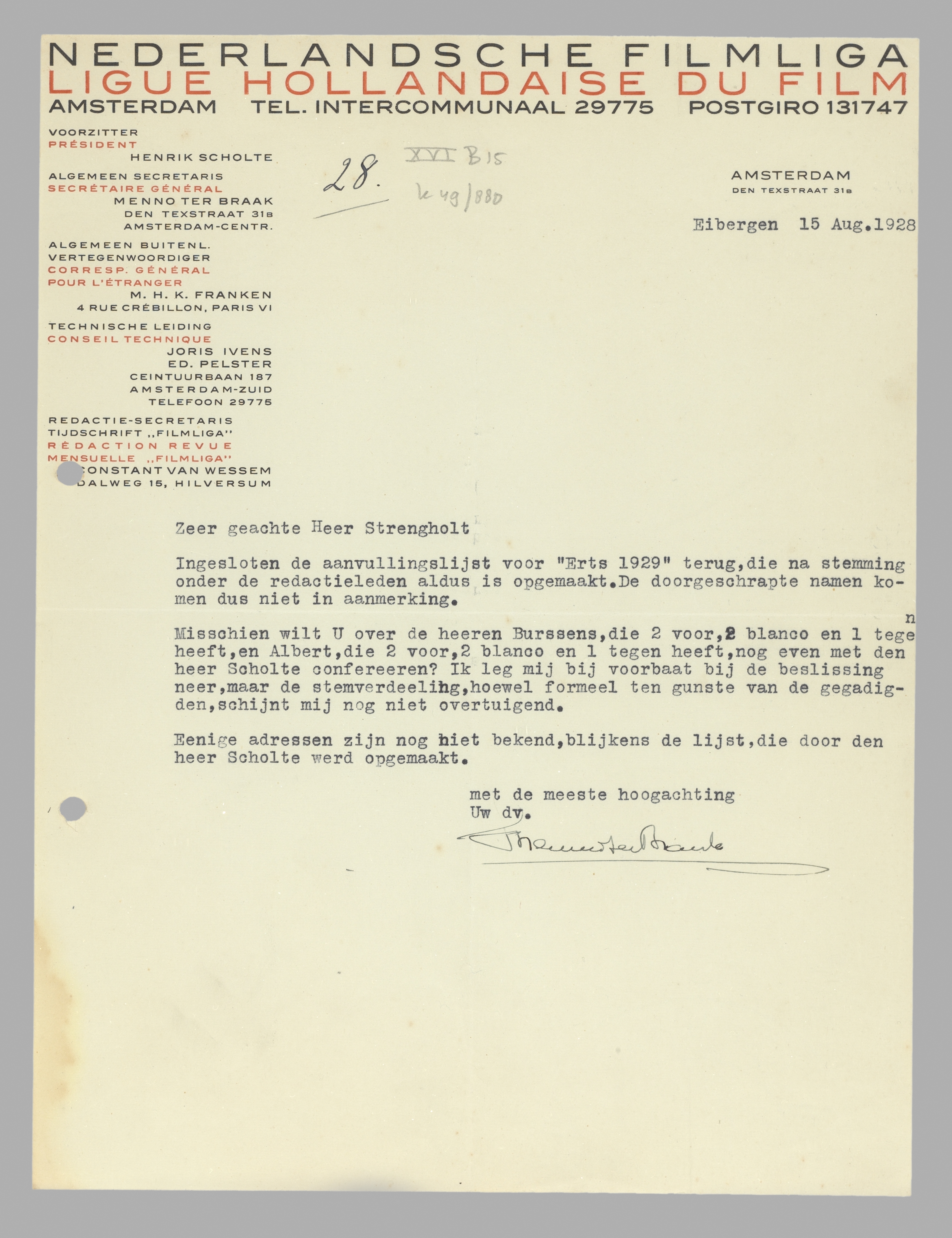 Ingesloten de aanvullingslijst voor ‘Erts 1928’ terug, die na stemming onder de redactieleden aldus is opgemaakt. De doorgeschrapte namen komen dus niet in aanmerking.