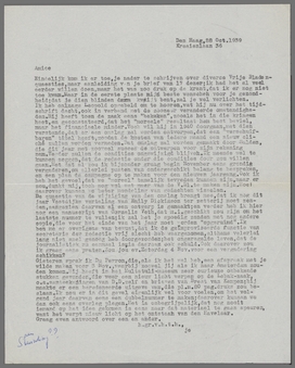 Gisteren sprak ik Du Perron, die, als ik het wel heb, een afspraak met je wilde maken voor 3 Nov., waarbij zoowel jij als ik naar Amsterdam zouden komen. Hij heeft in het Multatuli-museum zeer curieuze onbekende stukken gevonden, die weer een nieuw licht werpen op de Lebak-zaak, o.a. aanteekeningen van D.D. zelf en brieven van Brest van Kempen; hij maakte er een beredeneerde uitgave van, die pl.m. 80 pag. druks zou beslaan. Ik zou er in dit geval eigenlijk wel voor voelen, om het volgend jaar daarvan eens een dubbelnummer te maken; daarover kunnen we dan ook eens overleg plegen. Het is onbegrijpelijk, dat nog nooit iemand op het idee gekomen is eens naar dat materiaal te gaan speuren, want het werpt nieuw licht op het ontstaan van den Havelaar.