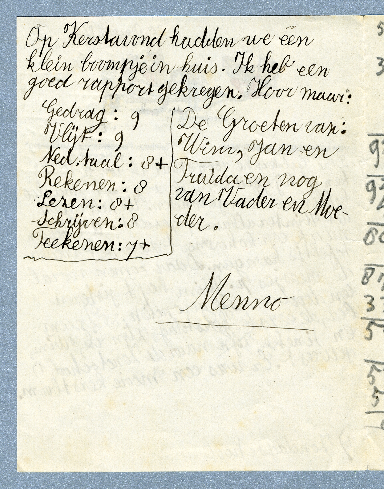 Op Kerstavond hadden we een klein boompje in huis. Ik heb een goed rapport gekregen. Hoor maar: