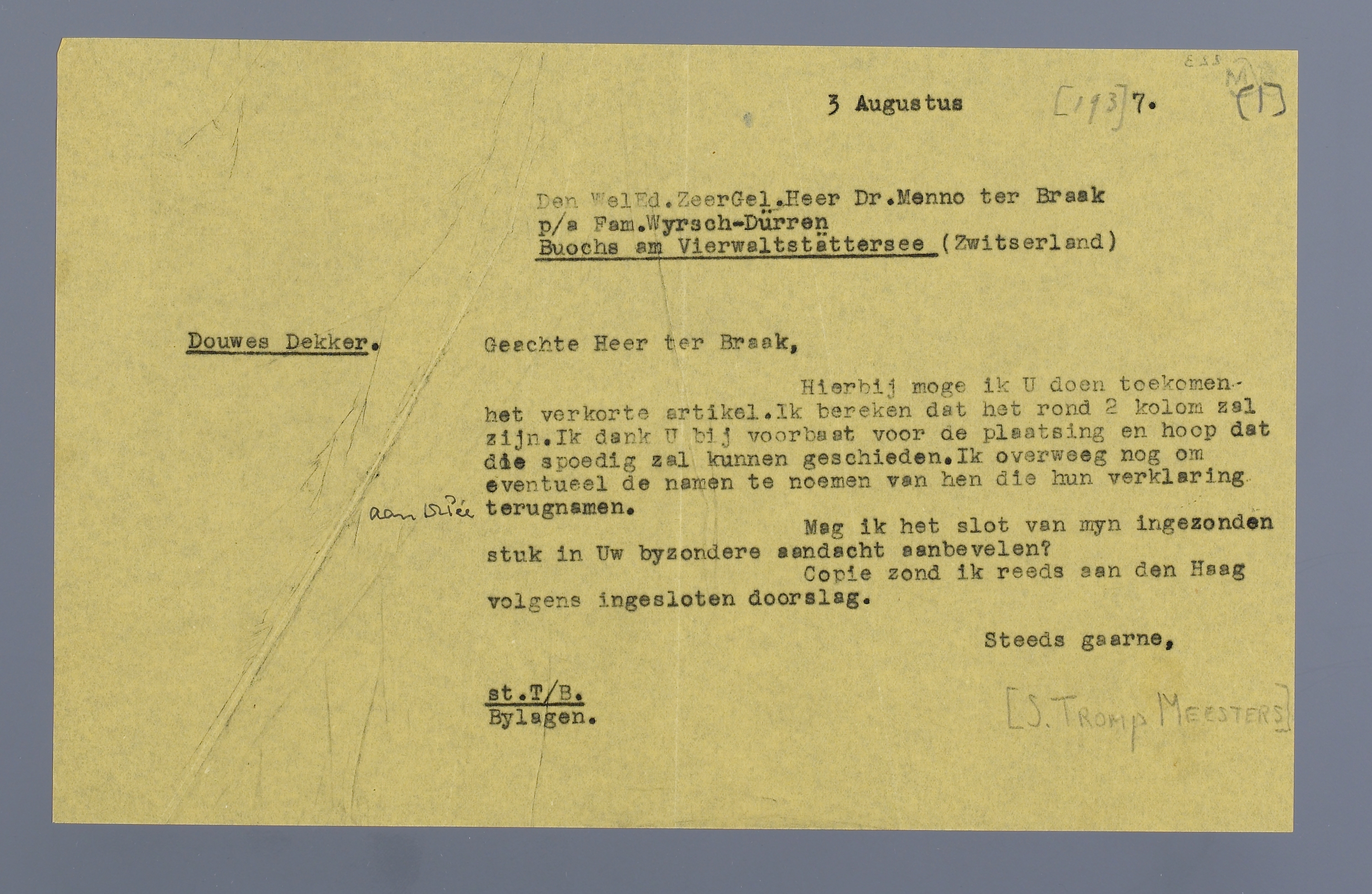 Den WelEd.ZeerGel. Heer Dr. Menno ter Braak