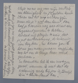 Het deed mij plezier te zien, dat je, met enthousiasme, de teekening wou bezitten. En hierom zou ik het nu zeer onaangenaam empfinden, zoo het over de lange baan werd geschoven.