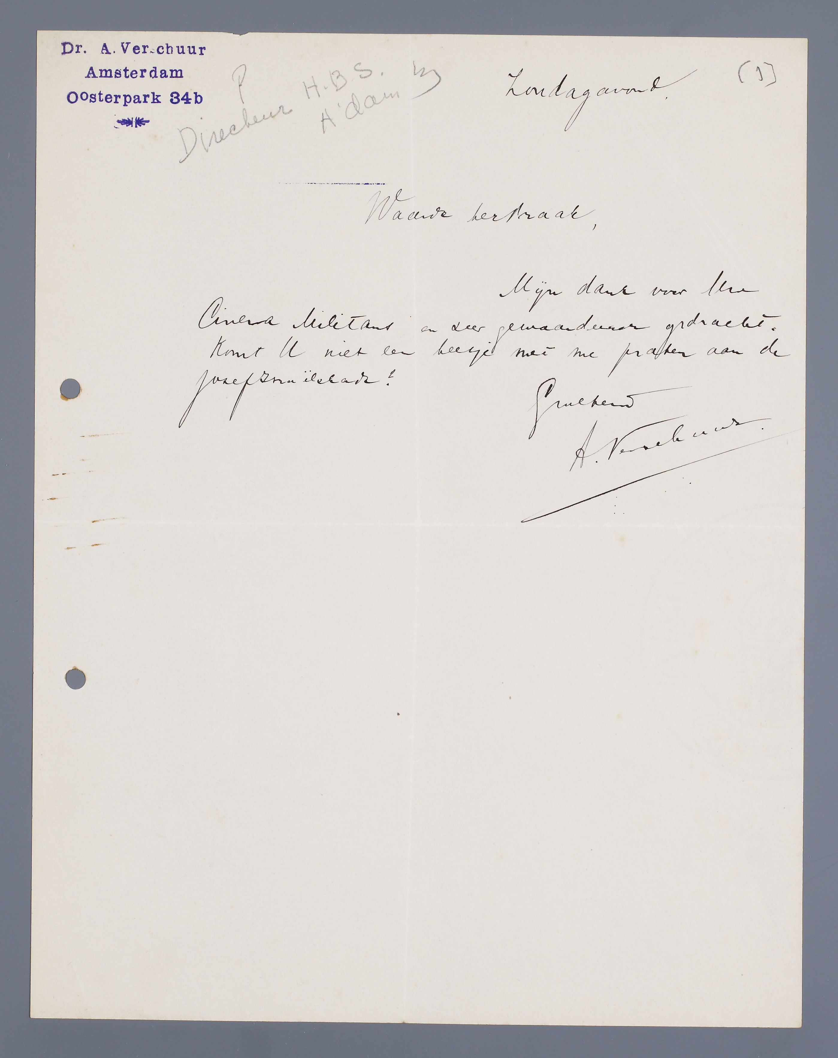 Mijn dank voor Uw Cinema Militans en zeer gewaardeerde opdracht. Komt U niet een beetje met me praten aan de Jozef Israëlskade?