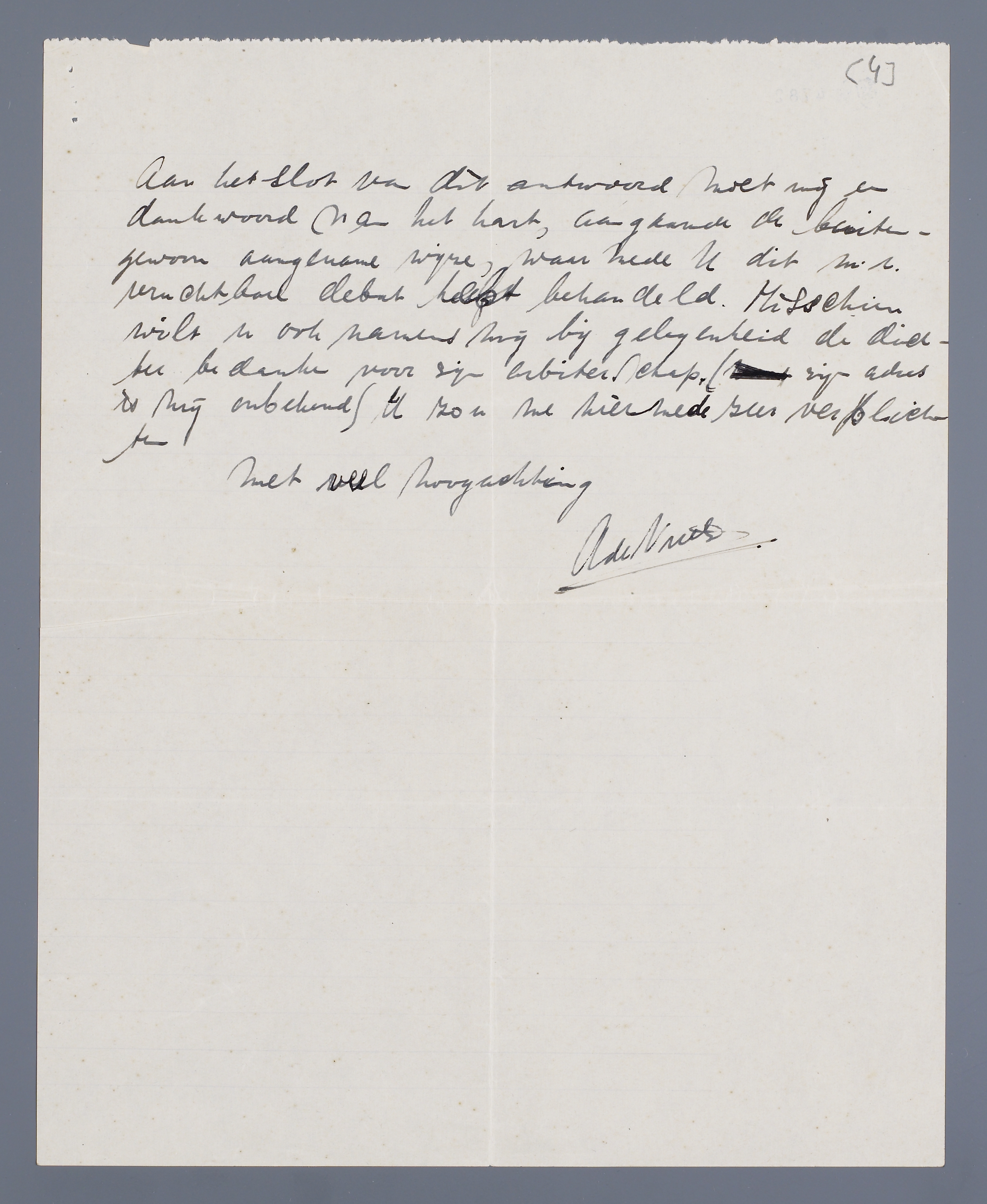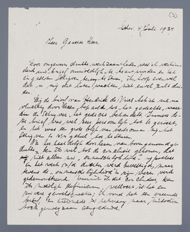 Door ongewoon drukke werkzaamheden was ik verhinderd uw brief onmiddellijk te beantwoorden en het ingesloten schrijven terug te sturen, ik hoop evenwel dat u mij dit laten wachten niet euvel zult duiden.