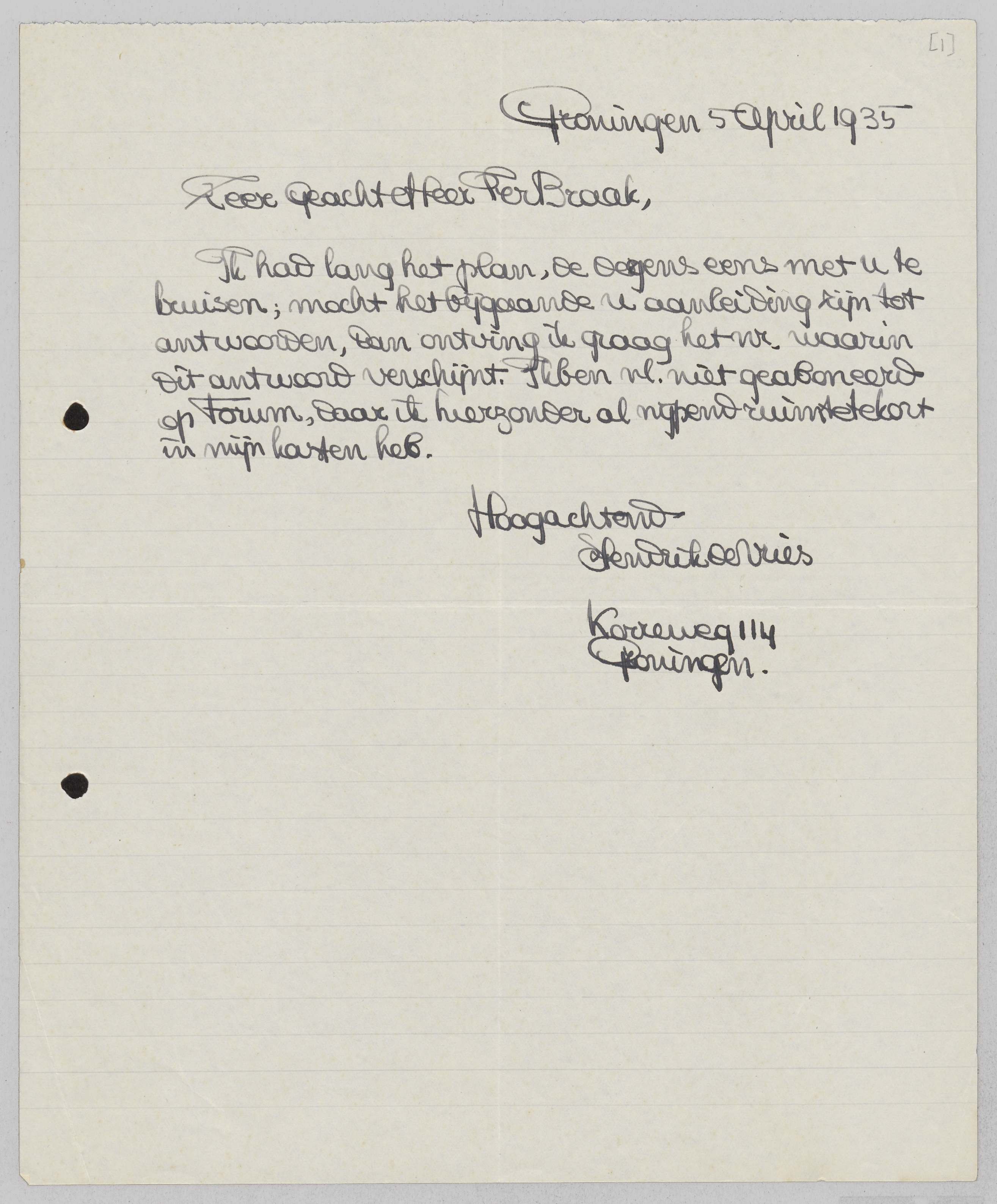 Ik had lang het plan, de degens eens met u te kruisen; mocht het bijgaande u aanleiding zijn tot antwoorden, dan ontving ik graag het nr. waarin dit antwoord verschijnt. Ik ben nl. niet geaboneerd op Forum, daar ik hierzonder al nijpend ruimtetekort in mijn kasten heb.