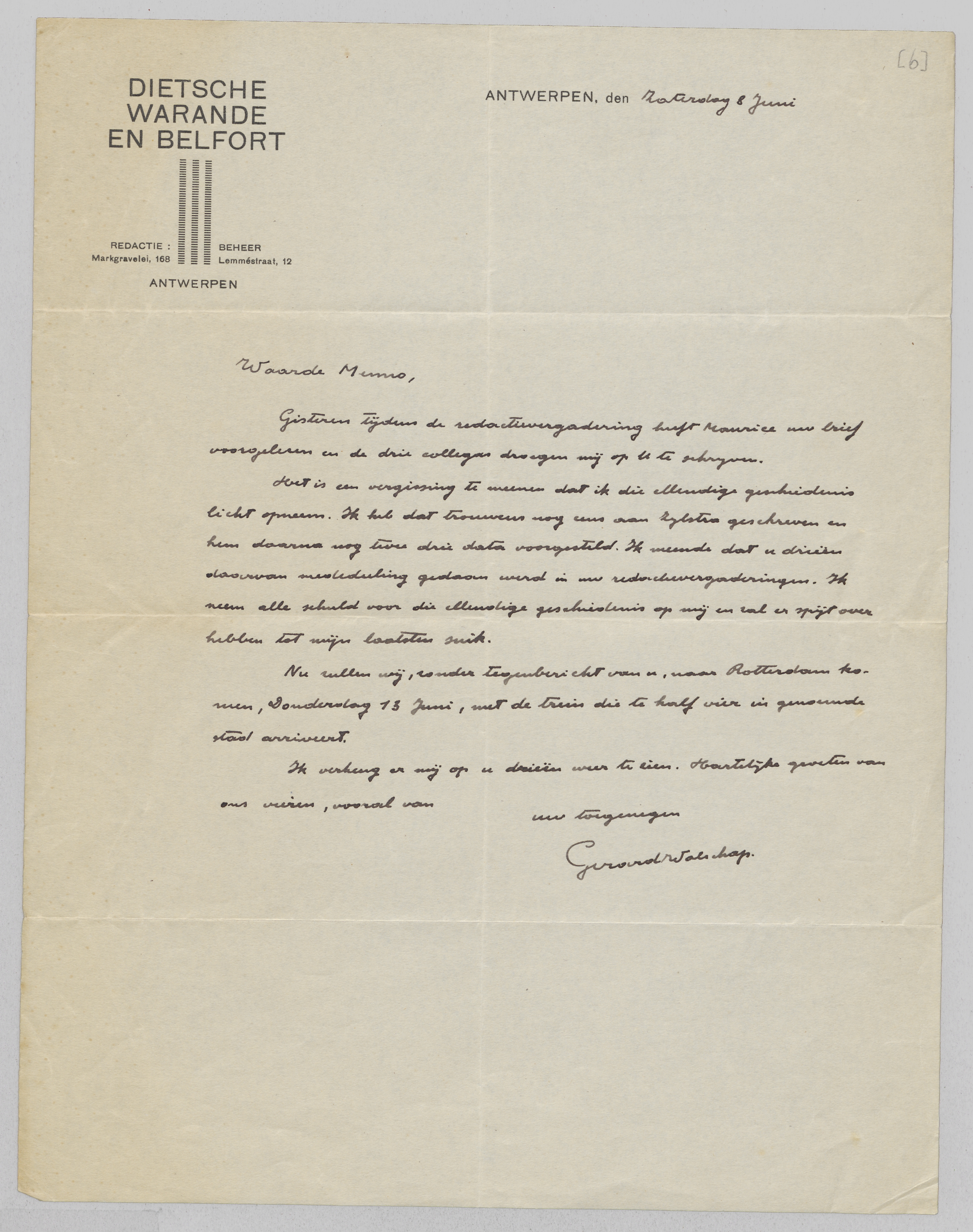Het is een vergissing te meenen dat ik die ellendige geschiedenis licht opneem. Ik heb dat trouwens nog eens aan Zijlstra geschreven en hem daarna nog twee drie data voorgesteld. Ik meende dat u drieën daarvan mededeeling gedaan werd in uw redactievergaderingen. Ik neem alle schuld voor die ellendige geschiedenis op mij en zal er spijt over hebben tot mijn laatsten snik.