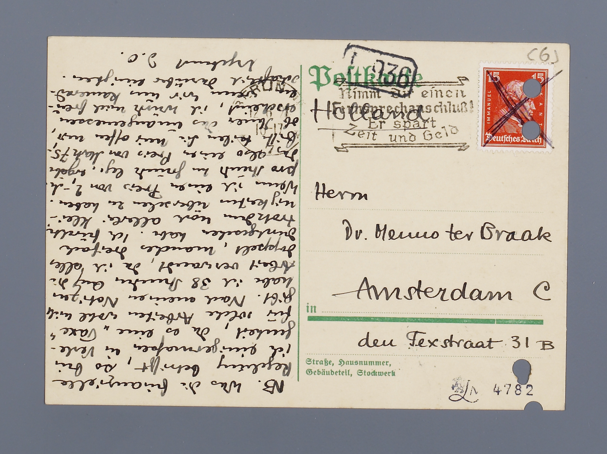 NB Was die finanzielle Regelung betrifft, so bin ich einigermassen in Verlegenheit, da es eine ‘Taxe’ für solche Arbeiten wohl nicht gibt. Nach meinen Notizen habe ich 38 Stunden auf die Arbeit verwandt, da ich alles doppelt, maches dreifach durchgesehen habe. Ich fürchte trotzdem noch allerlei Kleinigkeiten übersehen zu haben. Wenn ich einen Preis von 2,-M pro Stunde zur Gründe lege, ergabe das also einen Preis von Mark 75,- Bitte teilen Sie mir offen mit ob Ihnen das unangemessen erscheint, ich würde mich frei- [onleesbaar] wir uns kameradschaftlich darüber einigen.