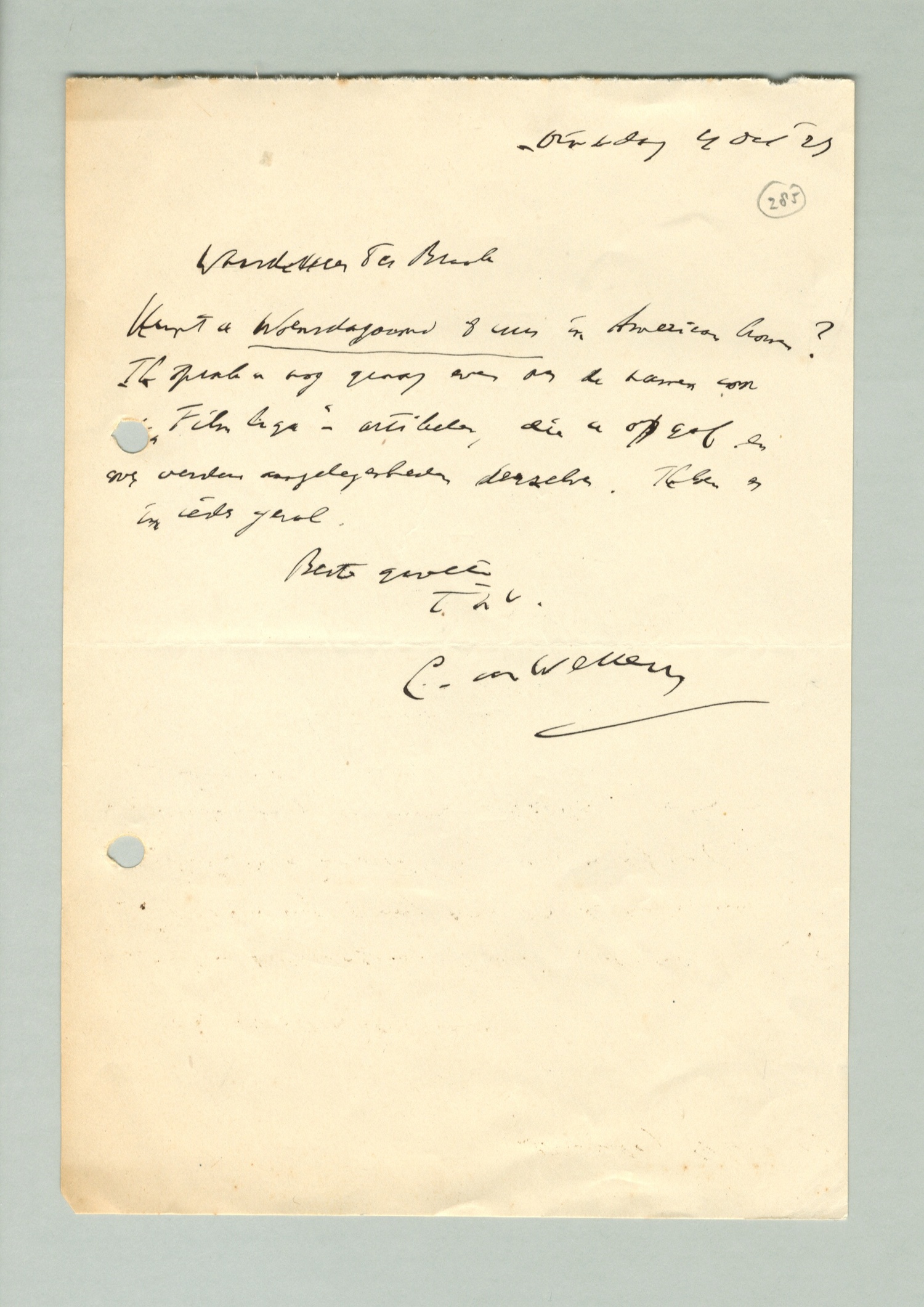 Kunt u Woensdagvond 8 uur in American komen? Ik sprak u nog graag even over de namen voor de ‘Film Liga’-artikelen, die u opgaf en nog verdere aangelegenheden derzelve. Ik ben er in ieder geval.