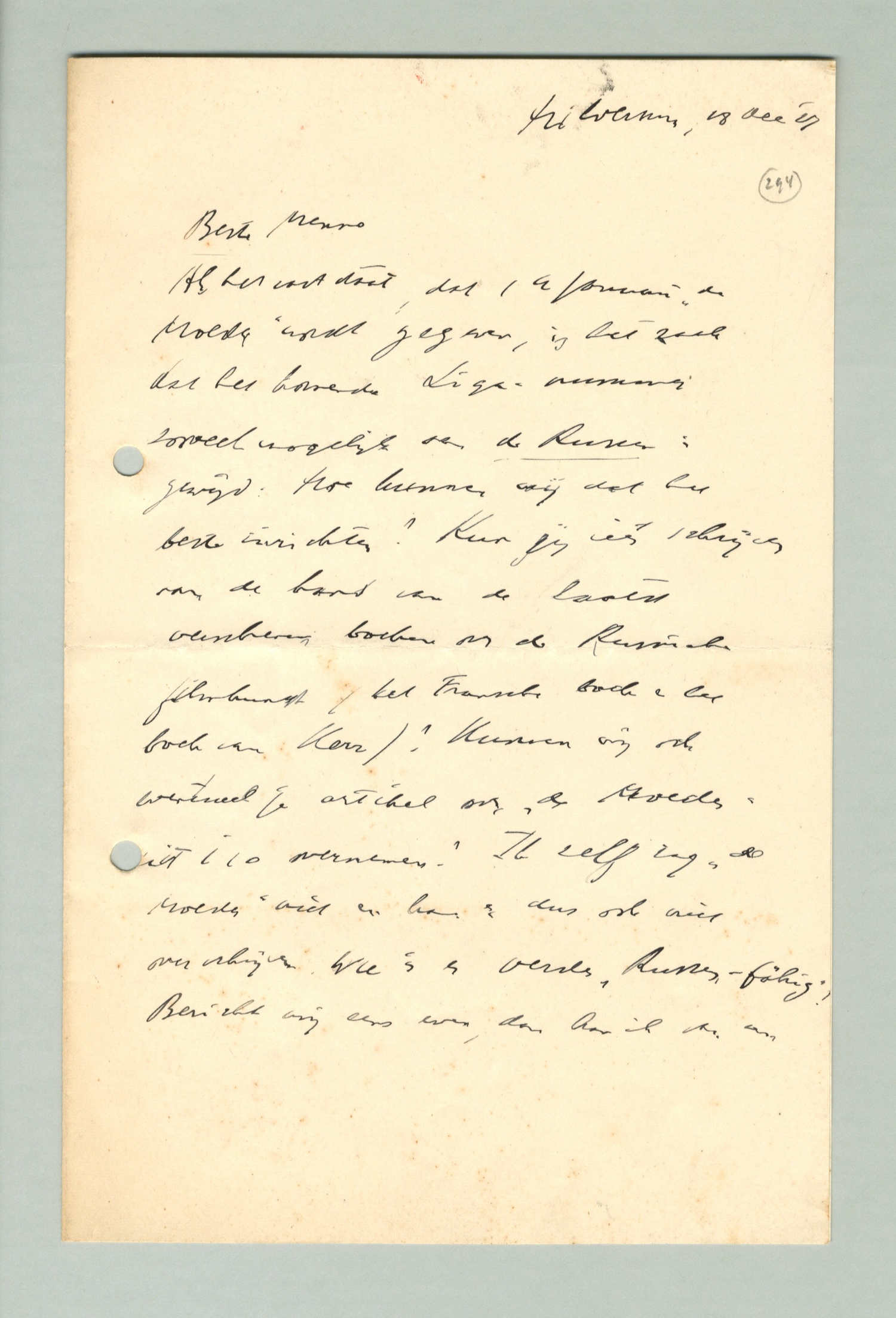 Als het vaststaat, dat le Januari de Moeder wordt gegeven, is het zaak dat het komende Liga nummer zooveel mogelijk aan de Russen is gewijd. Hoe kunnen we dat het beste inrichten? Kun jij iets schrijven van de kant van de laatst verschenen boeken over de Russische filmkunst (het Franse boek en het boek van Kerr)? Kunnen wij ook eventueel je artikel over de Moeder uit i10 overnemen? Ik zelf zag de Moeder niet en kan er dus ook niet over schrijven. Wie is er verder ‘Russen fähig’? Bericht mij eens even, dan kan ik van een en ander werk maken, anders is er tegen den 14den niets voor elkaar. Ik zal ook onze beide Ukraïners aanschrijven voor een algemeen artikel over Russische filmkunst ben echter het adres van Bardach kwijt (ik gaf die zending, meen ik, aan jou).
