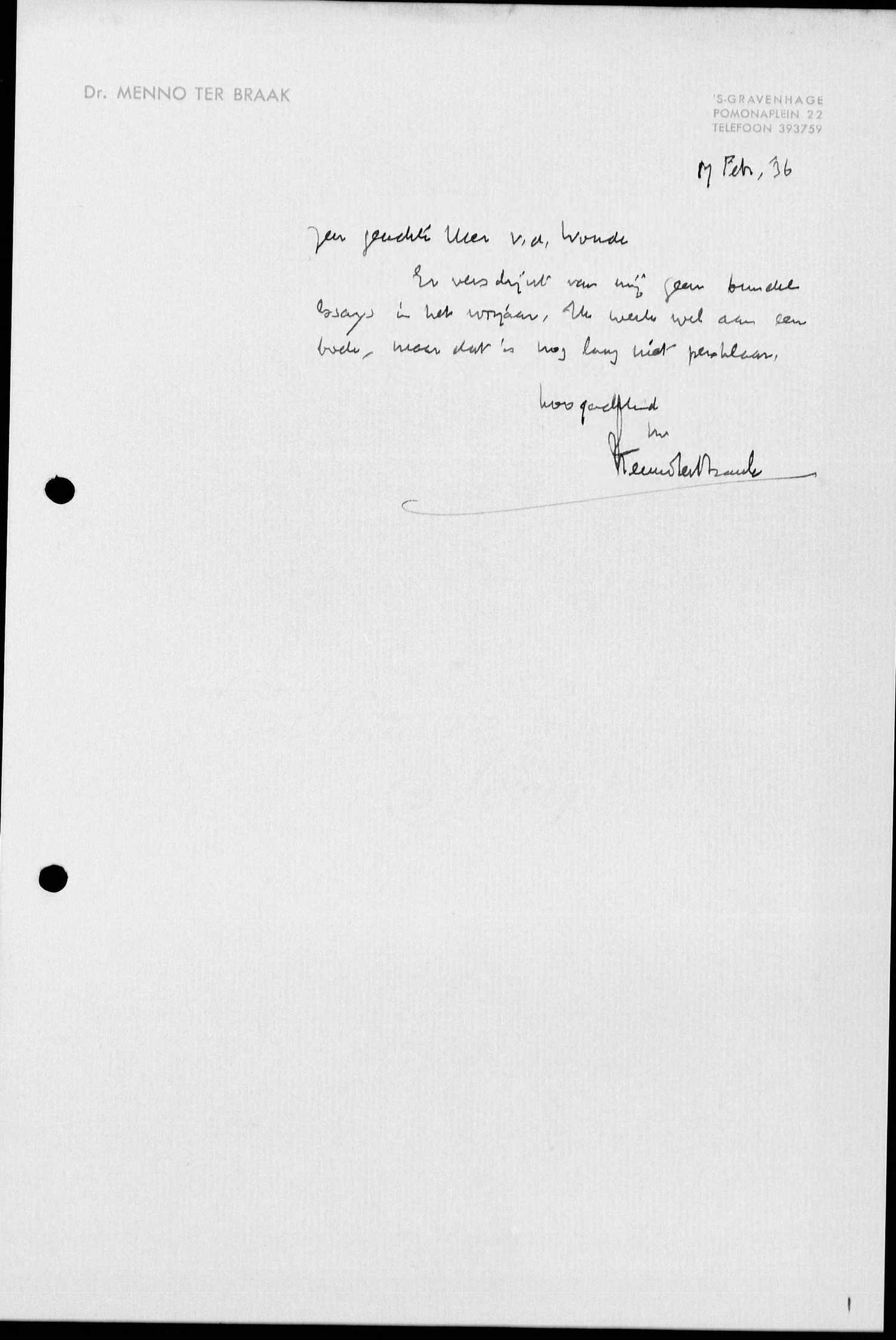 Briefwisseling Menno ter Braak - Johan van der Woude