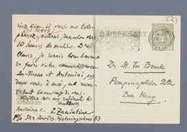 p/o [onleesbaar] Weteringschans 83 Amsterdam C.