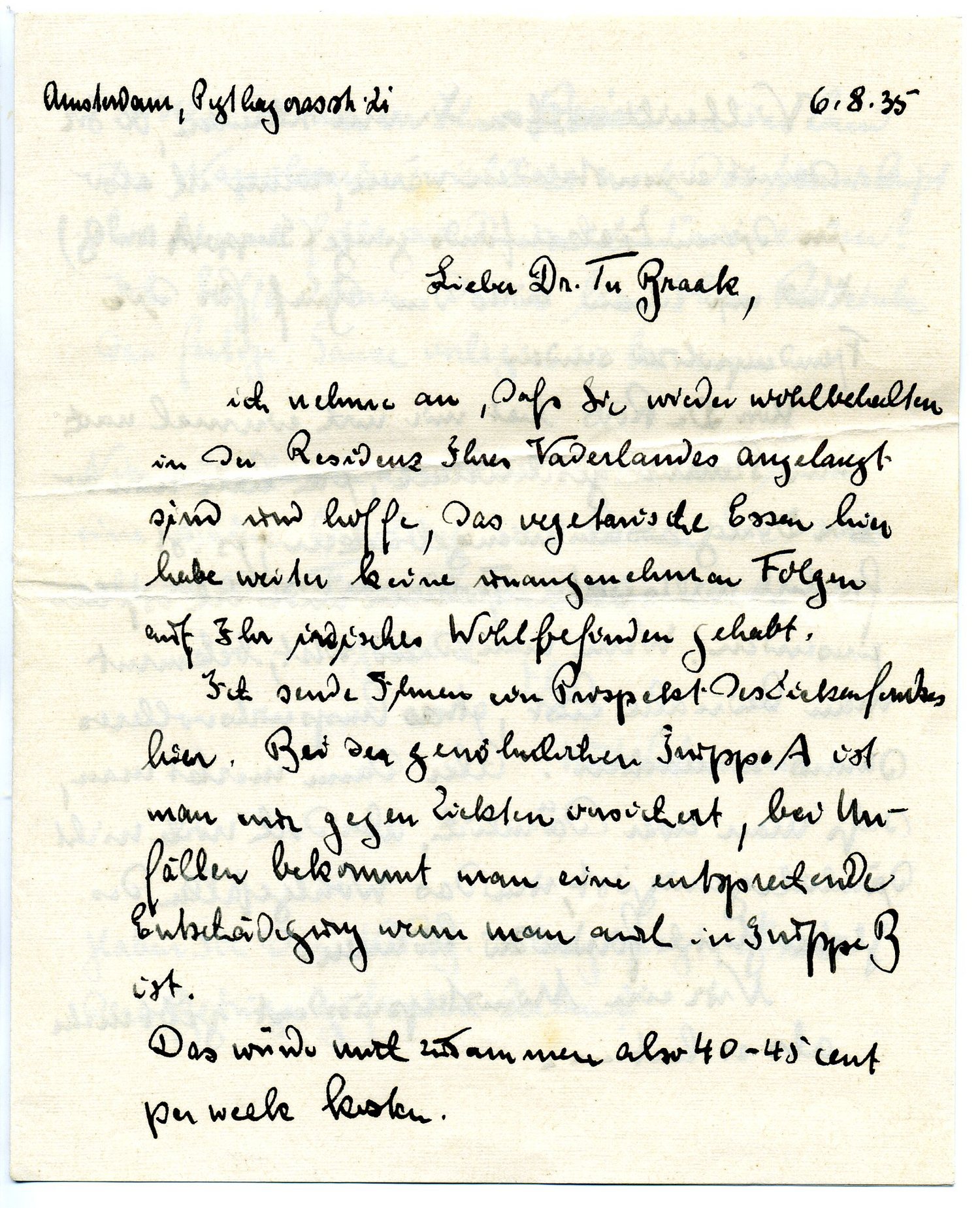 Vielleicht wollen Sie mir schreiben, ob Sie damit einverstanden wären, wenn ich also in diesen Ziekenfonds ginge (Gruppe A und B) und mir dann bitte den Brief für die Fremdenpolizei senden.