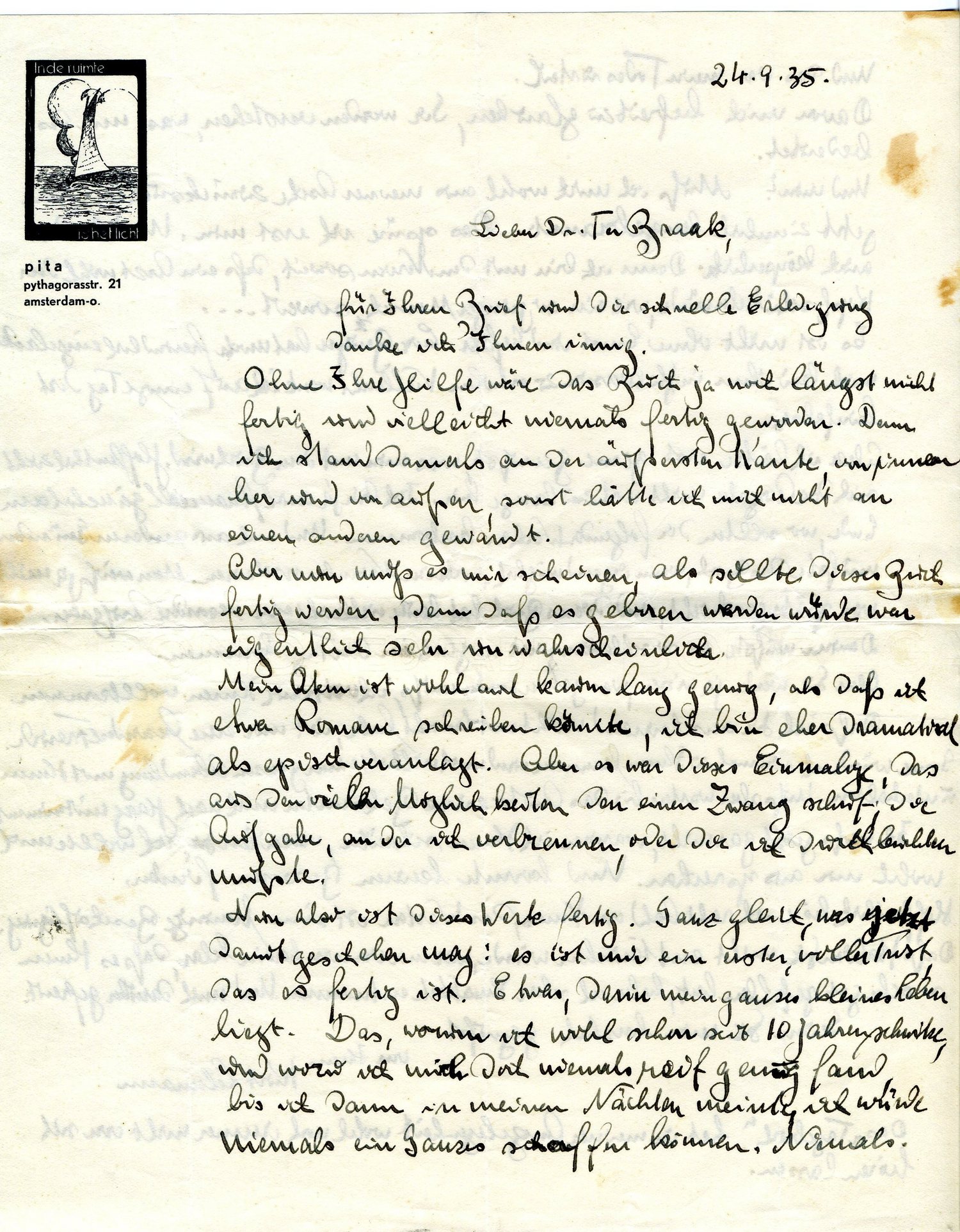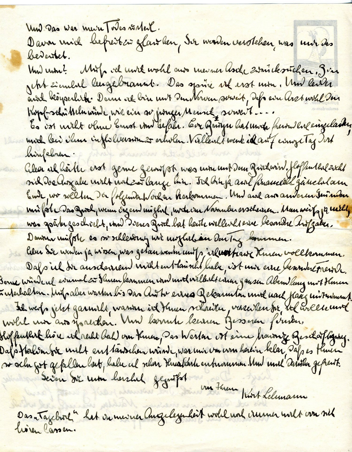 Es ist nicht ohne Ernst und Gefahr. Cor Bruyn hat mich freundlich eingeladen, mich bei ihm in Hilversum zu erholen. Vielleicht werde ich auf einige Tage dort hinfahren.