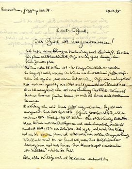 Der Vertrag aber wird bereits jetzt ausgeschrieben. Er geht mir morgen zu: Erste 2000 Ex. = 10%, folgende 5000 Ex. = 12½%, alle ev. weiteren = 15%. Vorschuß: 4x50 Gulden. Das ist der Vorschlag Queridos.