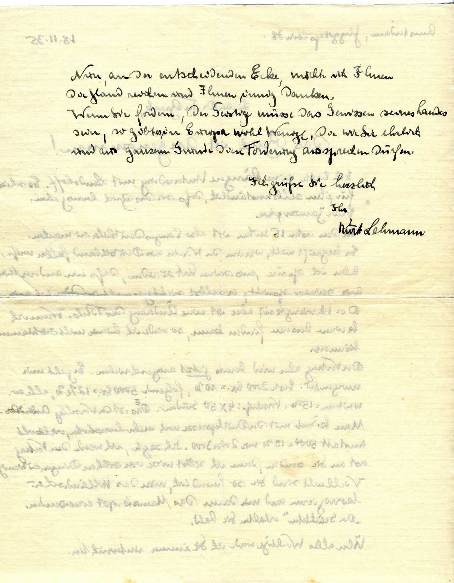 Wenn Sie fordern, der Geistige müsse das Gewissen seines Landes sein, so gibt es in Europa wohl Wenige, die wie Sie ehrlich und aus ganzem Grunde diese Forderung aussprechen dürfen.