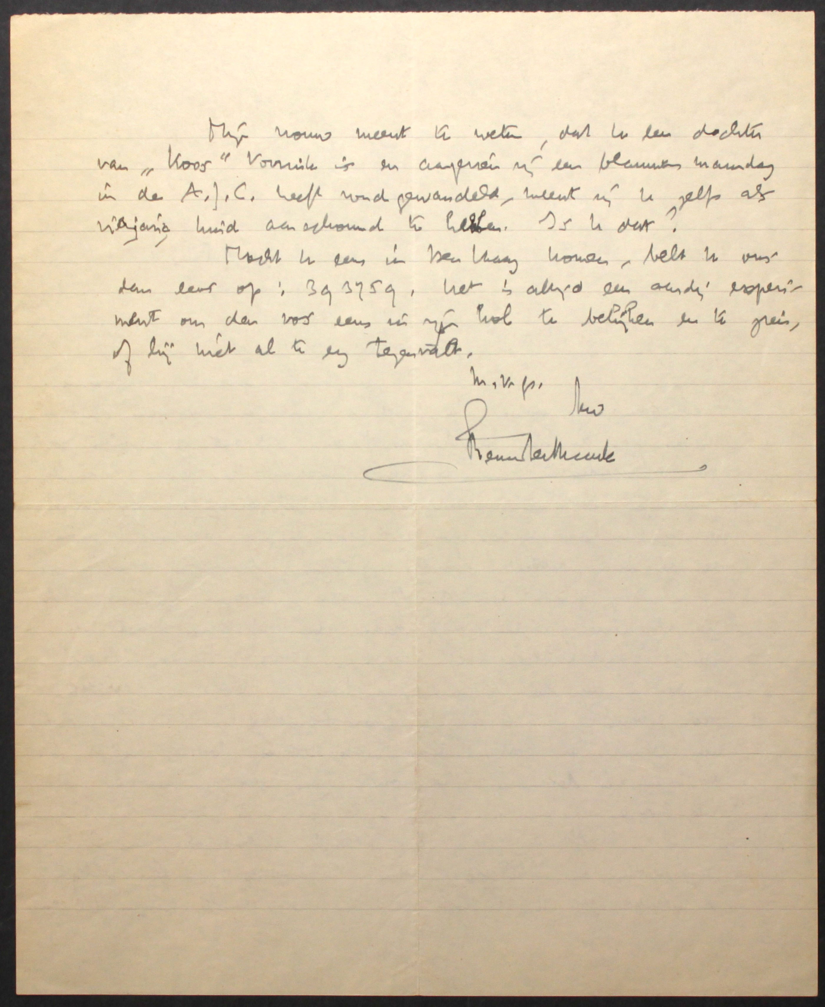 Mijn vrouw meent te weten, dat U een dochter bent van ‘Koos’ Vorrink is en aangezien zij een blauwen maandag in de A.J.C. heeft rondgewandeld, meent zij U zelfs als vierjarig kind aanschouwd te hebben. Is U dat?