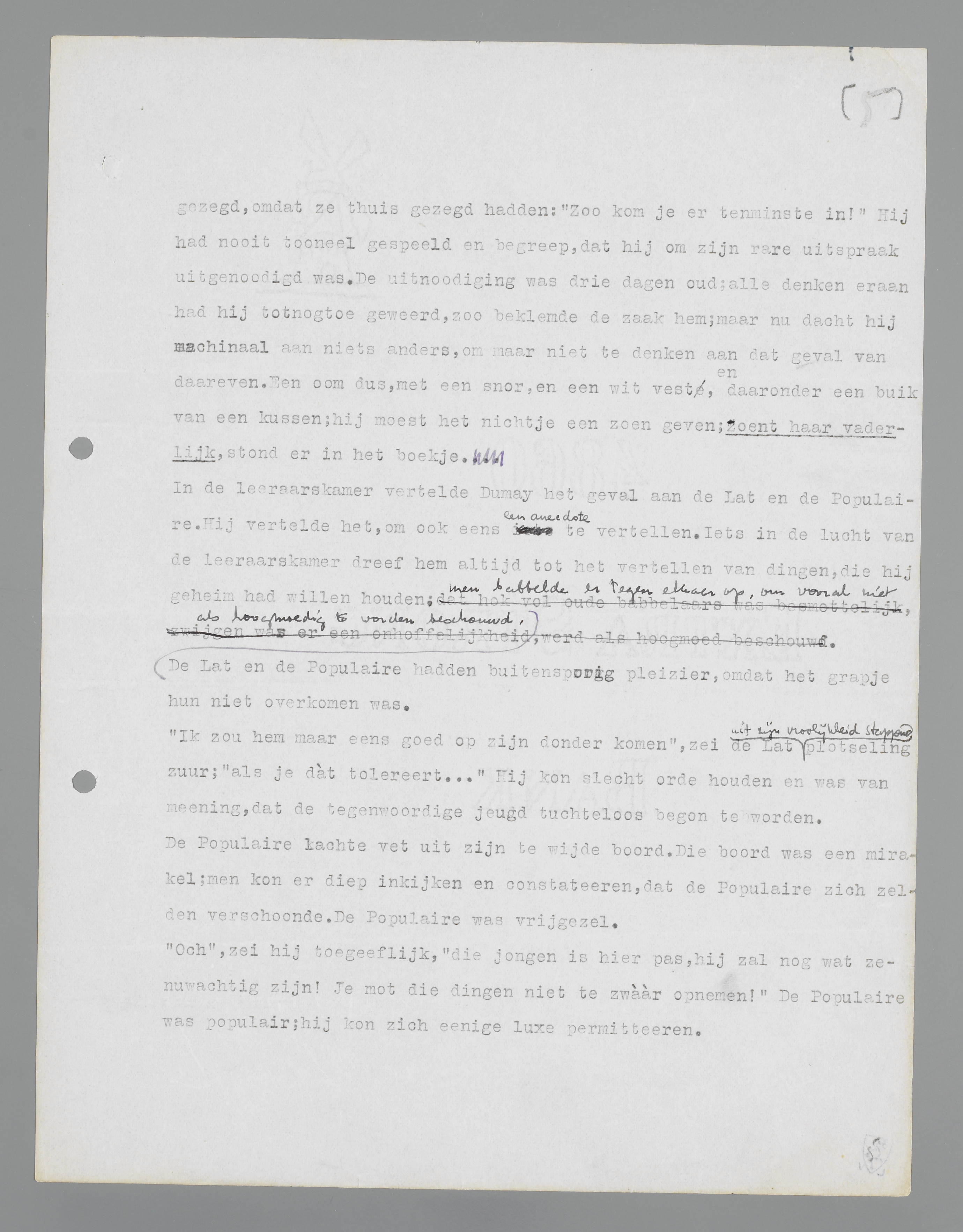 ‘Och’, zei hij toegeeflijk, ‘die jongen is hier pas, hij zal nog wat zenuwachtig zijn! Je mot die dingen niet te zwààr opnemen!’ De Populaire was populair; hij kon zich enige luxe permitteren.