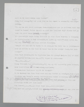 hem gevraagd, of hij het wilde doen en hij had ja gezegd, omdat ze thuis gezegd hadden: ‘Zo kom je er tenminste in!’ Hij had nooit toneel gespeeld en begreep, dat hij om zijn rare uitspraak uitgenodigd was. De uitnodiging was drie dagen oud; alle denken eraan had hij totnogtoe geweerd, zo beklemde de zaak hem; maar nu dacht hij machinaal aan niets anders, om maar niet te denken aan dat geval van daareven. Een oom dus, met een snor, en een wit vest, en daaronder een buik van een kussen; hij moest het nichtje een zoen geven; zoent haar vaderlijk, stond er in het boekje.