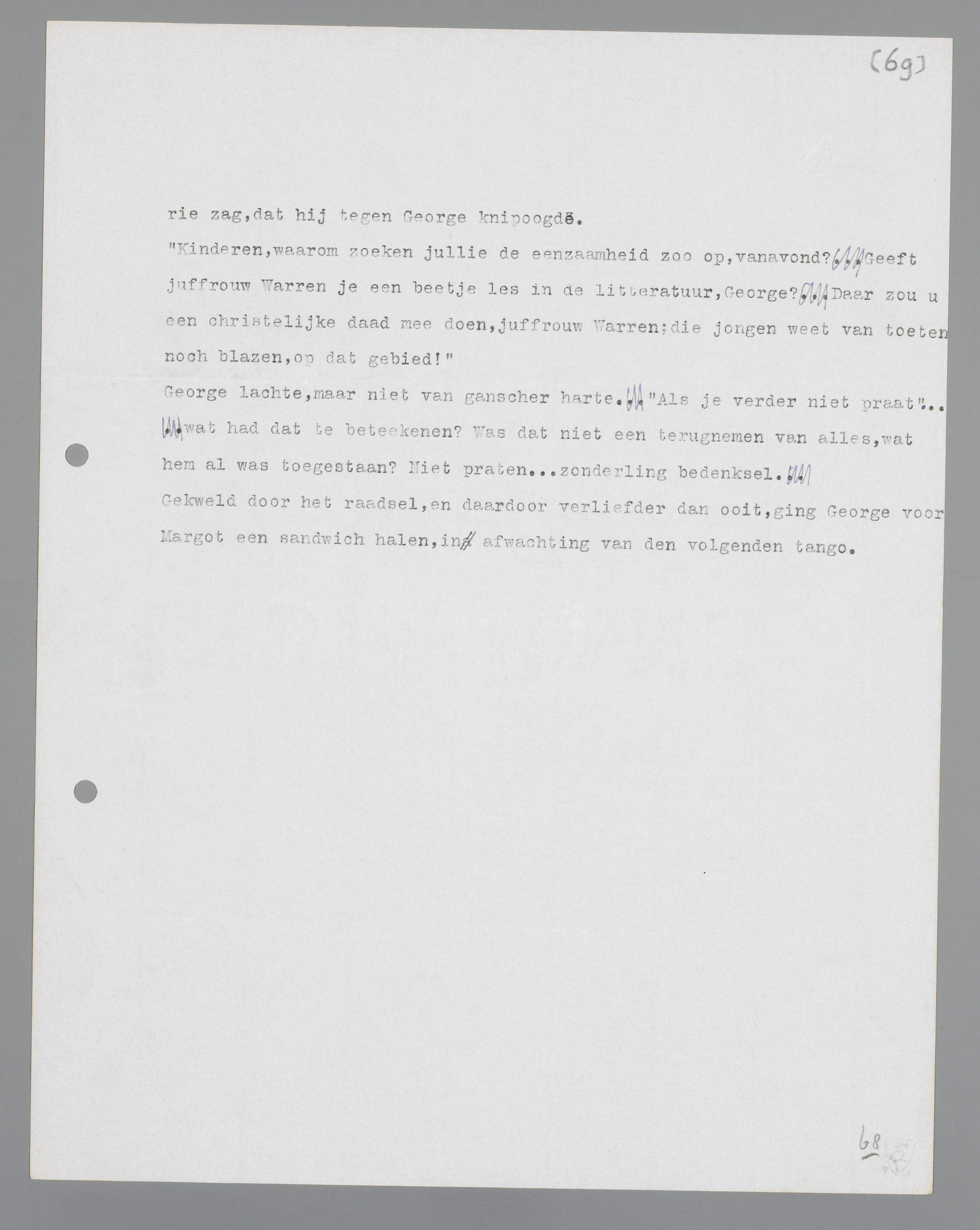Gekweld door het raadsel, en daardoor verliefder dan ooit, ging George voor Margot een sandwich halen, in afwachting van de volgende tango.