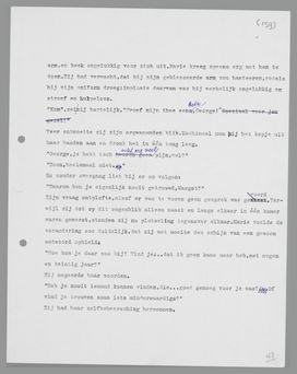 willen laten beseffen, dat hij niets minder dan mij verliest. Dat zal dan mijn verleidingskunst wel zijn. Hij moet in mij zijn mooiste filmster verliezen. Hoe gemeen, hoe berekenend zou zoiets klinken, wanneer ik het opschreef! En hoe eenvoudig en menselijk is het in werkelijkheid! Ben ik gemeen, berekenend, koel, omdat ik aan veel gevoelens een nuchtere naam geef? Kom! Ik, koel! Laat ik mezelf niets wijsmaken: als George niet van houding veranderd was, doorgegaan was op de manier van de eerste avond, zou ik me immers hals over kop in een avontuur hebben begeven, het avontuur George! O, ik weet het zeker! Maar die domme George is ernstig geworden en heeft mij gerespecteerd. Hoe dom is soms toch die ernst, en vooral de ernst van de liefde. En toch: als hij niet zo ernstig en bescheiden was geweest, zou ik hem niet sympathiek hebben gevonden, zoals ik hem nu sympathiek vind. Het wordt ingewikkeld: tegelijk dom en sympathiek ... en ten opzichte van de wijze, waarop ik hem nu wil beproeven, maakt dat toch ook weer niet het geringste verschil. Gewetenloos, gewetenloos. ...