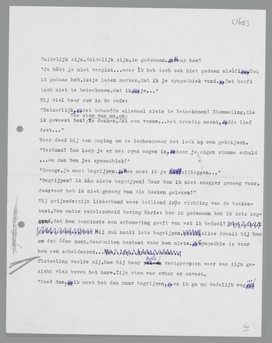 Marie leunde tegen de boekenkast. George stond vlak voor haar, zij voelde zijn woorden over haar gezicht ademen. Zij wist op dat moment maar één ding: nooit zal ik hem duidelijk kunnen maken, waarom hij waarheid spreekt en tegelijk de grofste domheden zegt. En toch, aanstonds moet ik duidelijk zijn. ...