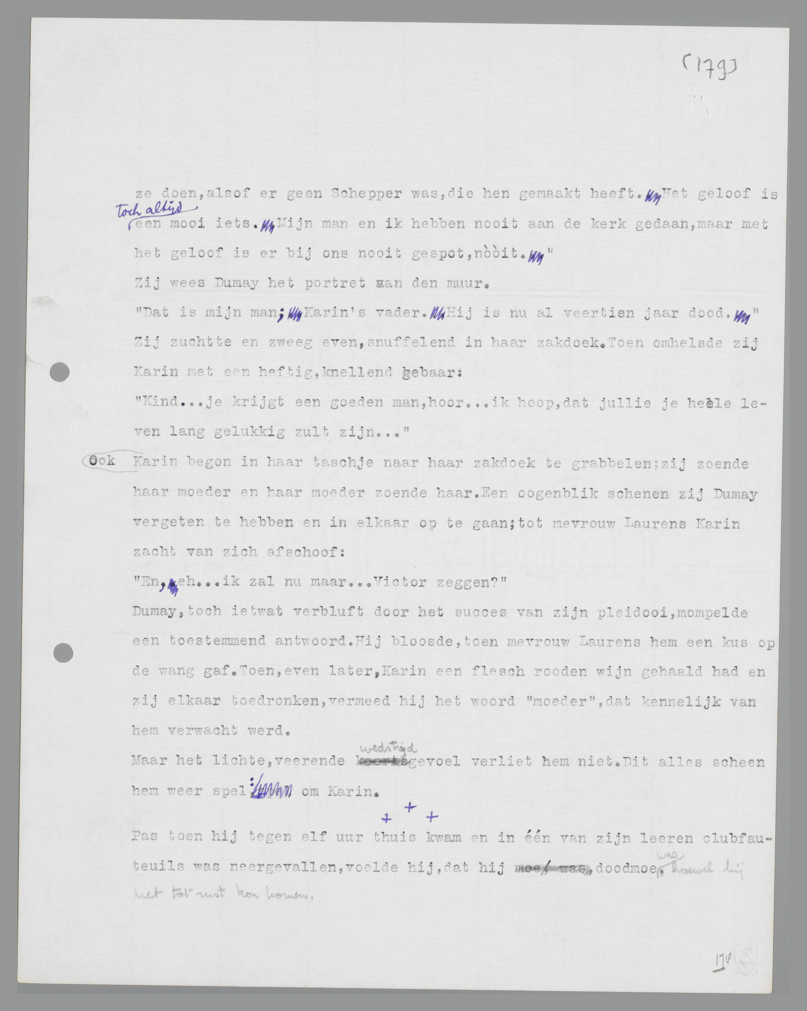 Mevrouw Laurens veegde met een zakdoekje haar lippen af; haar linkerhand plukte zenuwachtig aan haar rok. Zij keek schichtig naar Karin, die tegen Dumay's schouder leunde.
