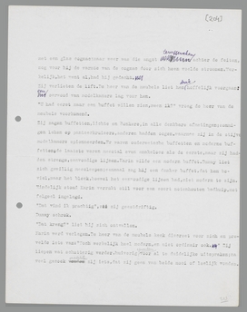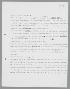 waarheid weten; dan zal zij mij loslaten, omdat zij eindelijk een afschuw van mij heeft. ... Hij meende tenslotte iets bereikt te hebben; zij huilde niet meer en zag hem met grote ogen aan. Zij zweeg en ademde hoorbaar, alsof zij het benauwd had. Nu zal zij zeggen, dat zij het begrepen heeft, dacht hij, en dat zij mij haat als de pest. ...