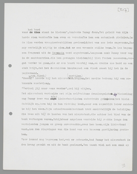 De laatste woorden had zij bijna gezongen. Zij sloegen Dumay lam; en terwijl de zachte, zwarte angst hem omwikkelde, voelde hij, dat al zijn motieven verduisterden, samensmolten tot niets, en dat alleen één zekerheid overbleef: ik kan het haar niet zeggen, ik moet alles uitstellen tot ... tot dat bloed weg is; misschien kan ik het haar nooit zeggen; maar eerst moet dat bloed weg. ...