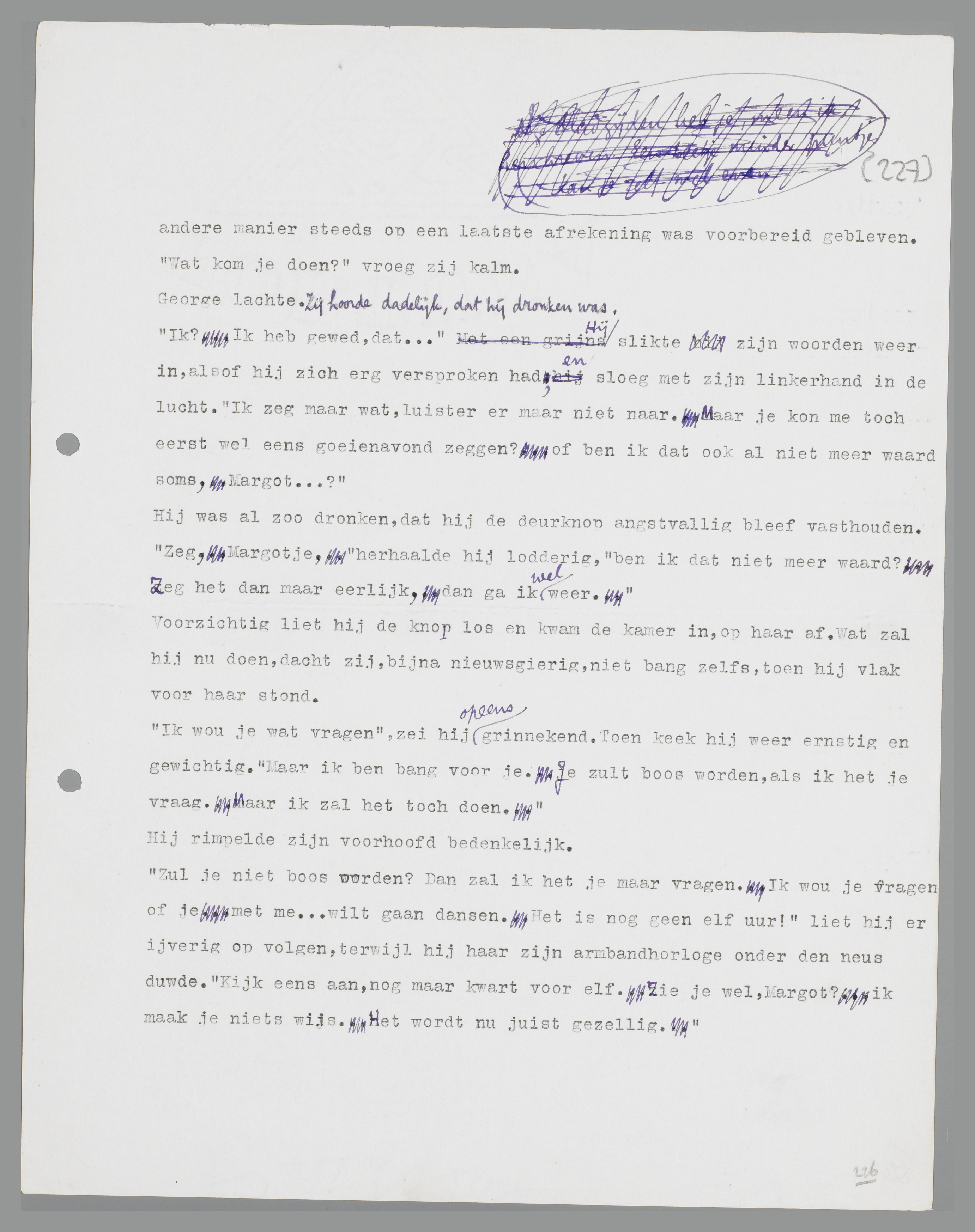 ‘Zul je niet boos worden? Dan zal ik het je maar vragen. Ik wou je vragen of je met me ... wilt gaan dansen. Het is nog geen elf uur!’ liet hij er ijverig op volgen, terwijl hij haar zijn armbandhorloge onder de neus duwde. ‘Kijk eens aan, nog maar kwart voor elf. Zie je wel, Margot? ik maak je niets wijs. Het wordt nu juist gezellig.’